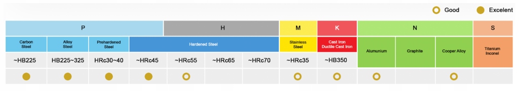 - Изготовлен из высококачественного твердого сплава (VHM), что обеспечивает высокую долговечность инструмента и способность обрабатывать широкий спектр материалов различной твердости.