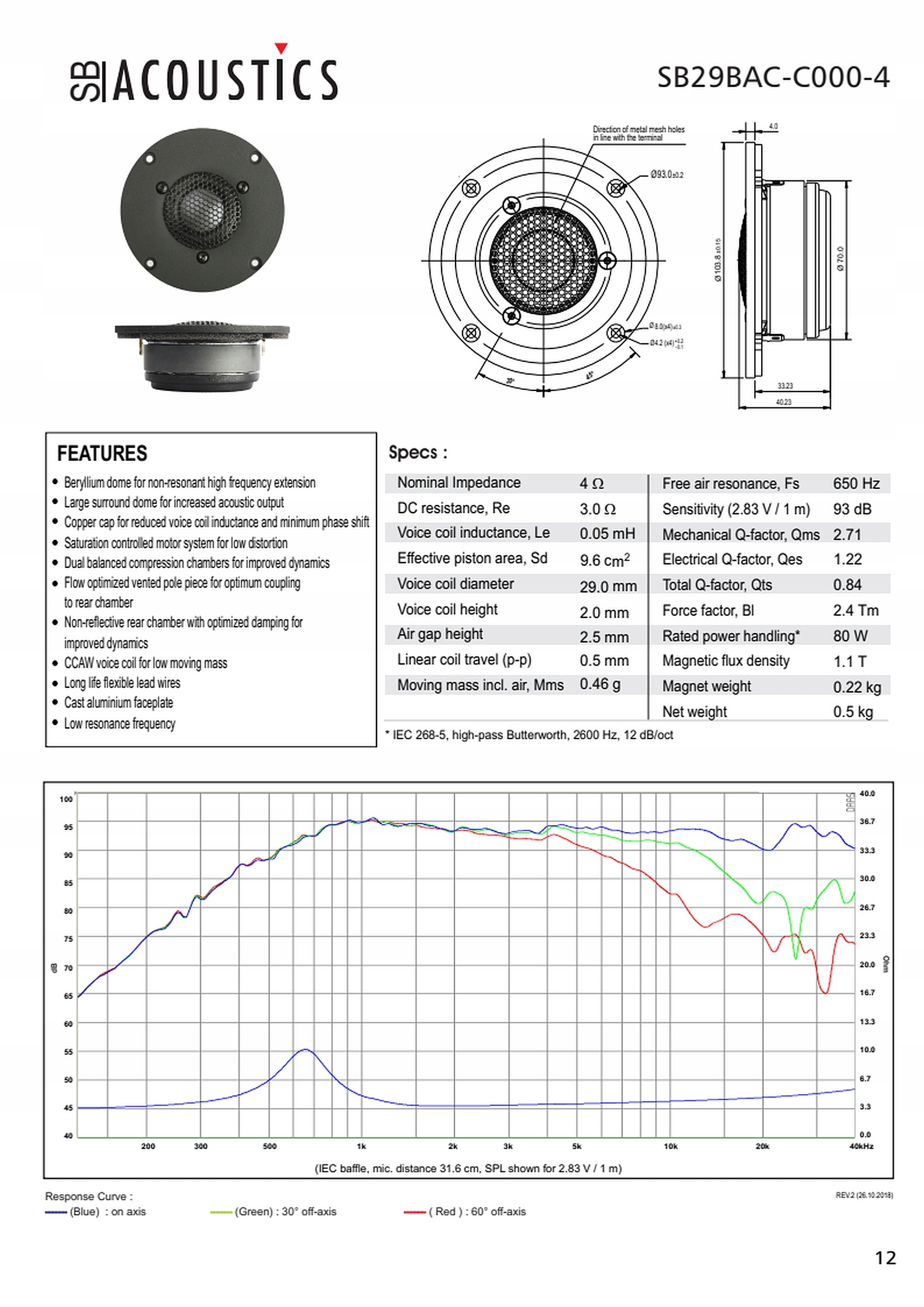 Просматривая «Твітер SB Acoustics SB29BAC-C000-4 / Beryllium 060-2631», вы можете быть уверены, что данный товар из каталога «Твитер» будет доставлен из Польши и проверен на целостность. В цене товара, указанной на сайте, учтена доставка из Польши. Внимание!!! Товары для Евросоюза, согласно законодательству стран Евросоюза, могут отличаться упаковкой или наполнением.