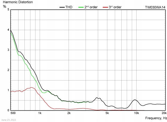 TW030WA14 — это высококлассный высокочастотный динамик для самых требовательных приложений, оснащенный множеством деталей, улучшающих характеристики, которые способствуют достижению низкой резонансной частоты, низкого уровня искажений и очень высокого частотного расширения.