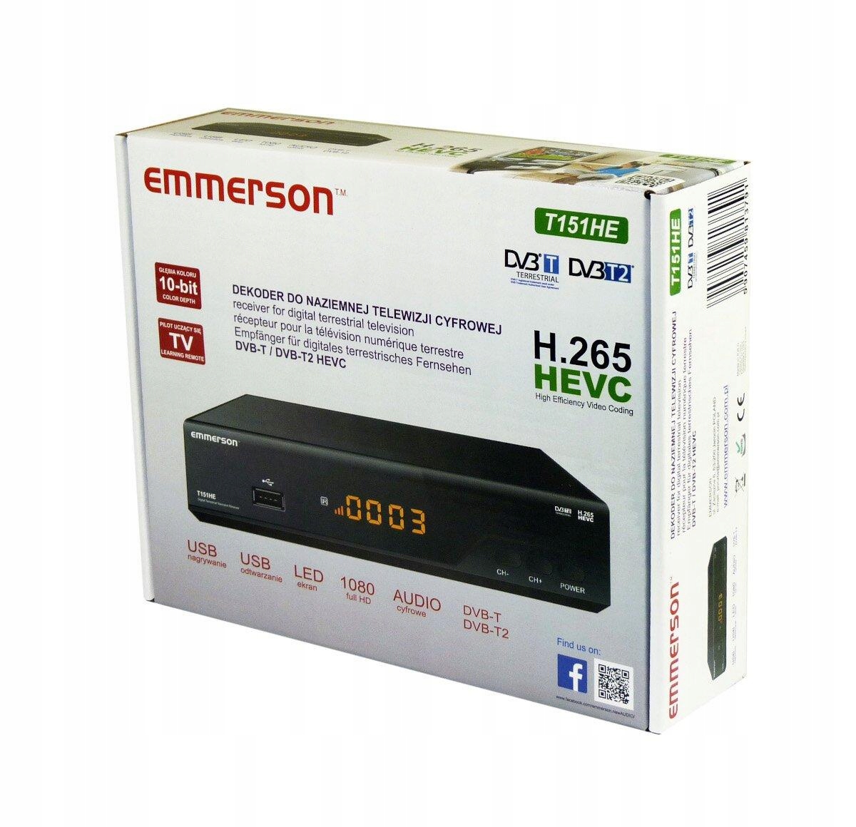 Emmerson T151He — современный декодер для приема цифрового эфирного телевидения Dvb-T2 Hevc, готовый к смене стандарта вещания с марта 2022 года. Он оснащен новым быстрым 10-битным процессором GX, который позволяет ему легко принимать каналы с 10-битной глубиной цвета. Декодер имеет все мультимедийные функции, такие как запись на USB, воспроизведение видео, аудио и фото файлов, программирование записи и функция остановки просмотра Time Shift. Преимущества: Декодер T151He обеспечивает превосходное качество приема всех программ Dvb-T/T2 Hevc. Разрешение HD. Новый быстрый 10-битный процессор обеспечивает прием каналов с 10-битной глубиной цвета и быструю работу декодера. Новый обучающий пульт дистанционного управления также поддерживает телевизоры любой марки, поэтому для просмотра телевизора вам понадобится только один пульт дистанционного управления. Запись на USB-накопитель, мультимедийный проигрыватель видео, аудио и фотофайлов всех популярных форматов. Программирование записи, программа передач EPG, телетекст, функция остановки просмотра Time Shift. Новый светодиодный дисплей с регулировкой яркости и выбором отображаемой информации (канал/часы) и включением или выключением часов в режиме ожидания. Декодер: Dvb-T/Dvb-T2, Mpeg2/4, H264 Avc, H265 Hevc, M-10 (10-бит), E-Ac-3 Совместим с требованиями к ресиверам Dvb-T/Dvb-T2 Hevc р >