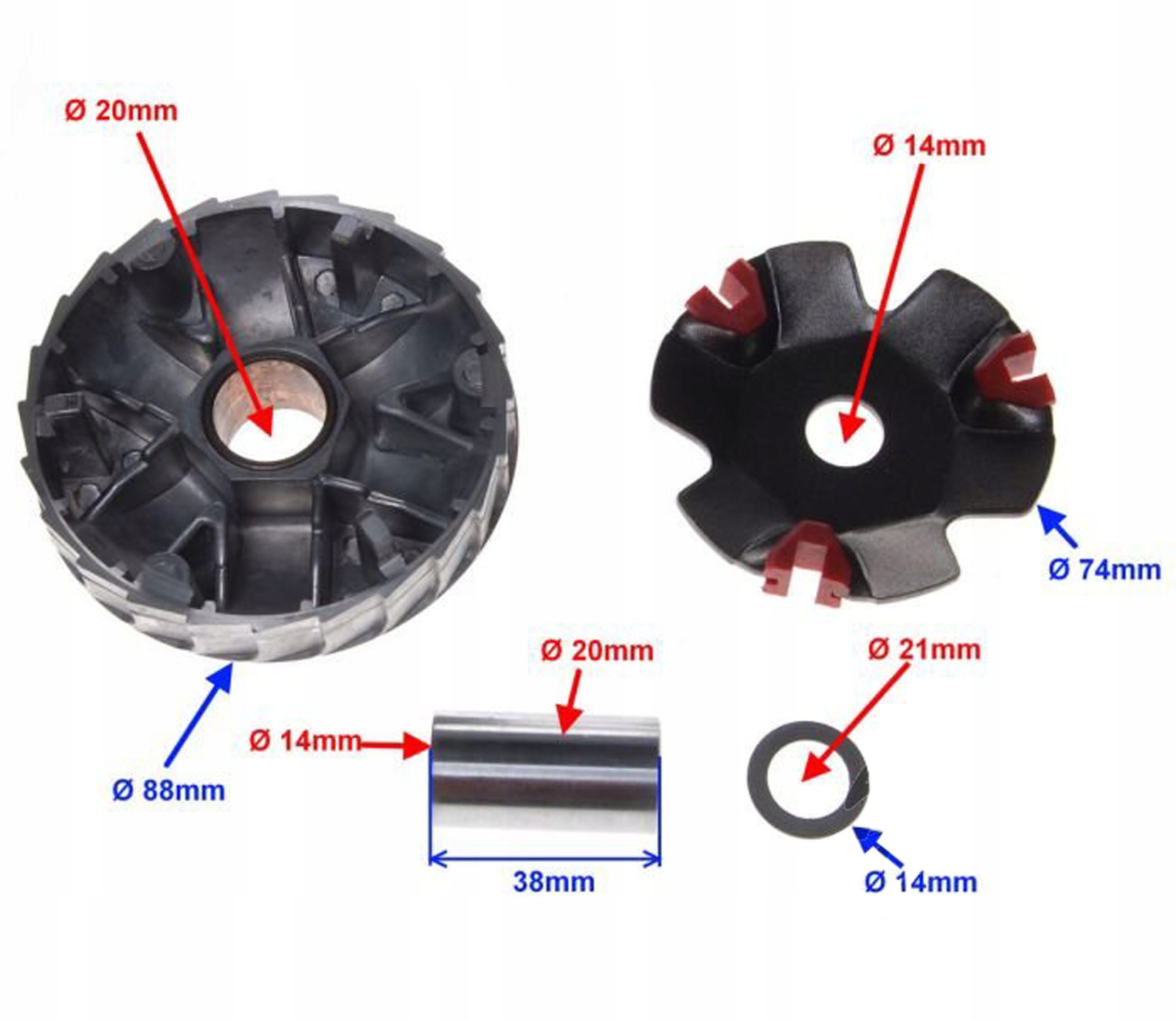 ОПИСАНИЕ: ВАРИАНТ 4T 50 CC TUNING БОЛЬШОЙ НАБОР GY6. ВАРИАНТ С 2 КОМПЛЕКТАМИ СПЕЦИАЛЬНЫХ РОЛИКОВ, КОРПУСОМ, ВТУЛКОЙ, ПРОСТАВОЧНОЙ ШАЙБОЙ И ПРУЖИНОЙ СЦЕПЛЕНИЯ. КОНСТРУКЦИЯ ДЕТАЛЕЙ ОТЛИЧАЕТСЯ ОТ ОРИГИНАЛЬНЫХ ЗАВОДСКИХ ДЕТАЛЕЙ, ПОЭТОМУ МЫ МОЖЕМ ПОЛУЧИТЬ ЛУЧШИЕ ПАРАМЕТРЫ. БЛАГОДАРЯ ИСПОЛЬЗОВАНИЮ СПЕЦИАЛЬНЫХ РОЛИКОВ (ДЛЯ МОДИФИКАЦИИ РОЛИКОВ РАЗНОГО ВЕСА) МЫ ПОЛУЧАЕМ МАКСИМАЛЬНЫЕ ОБОРОТЫ ДВИГАТЕЛЯ. ПРУЖИНА СЦЕПЛЕНИЯ (УСИЛЕННАЯ) ДЕЛАЕТ МОТОЦИКЛ БОЛЕЕ ДИНАМИЧНЫМ НА ПУСКЕ