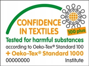 Standard 100 STANDARD 100 от OEKO-TEX ® — ведущий мировой знак безопасности для текстильной продукции. Продукция, удостоенная этого знака, не содержит вредных веществ в концентрациях, оказывающих негативное влияние на здоровье человека, в том числе: пестициды, хлорфенолы, формальдегид, аллергенные красители, запрещенные азокрасители и экстрагируемые тяжелые металлы.