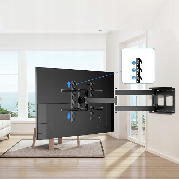✅Это удлиненное крепление для телевизора идеально подходит для решения проблем с обзорностью благодаря шарнирному кронштейну длиной 109 см. Обеспечивает максимальную универсальность и маневренность. Рычаг выдвигается на 106 см от стены, обеспечивая максимальное количество точек обзора под разными углами в нескольких комнатах.