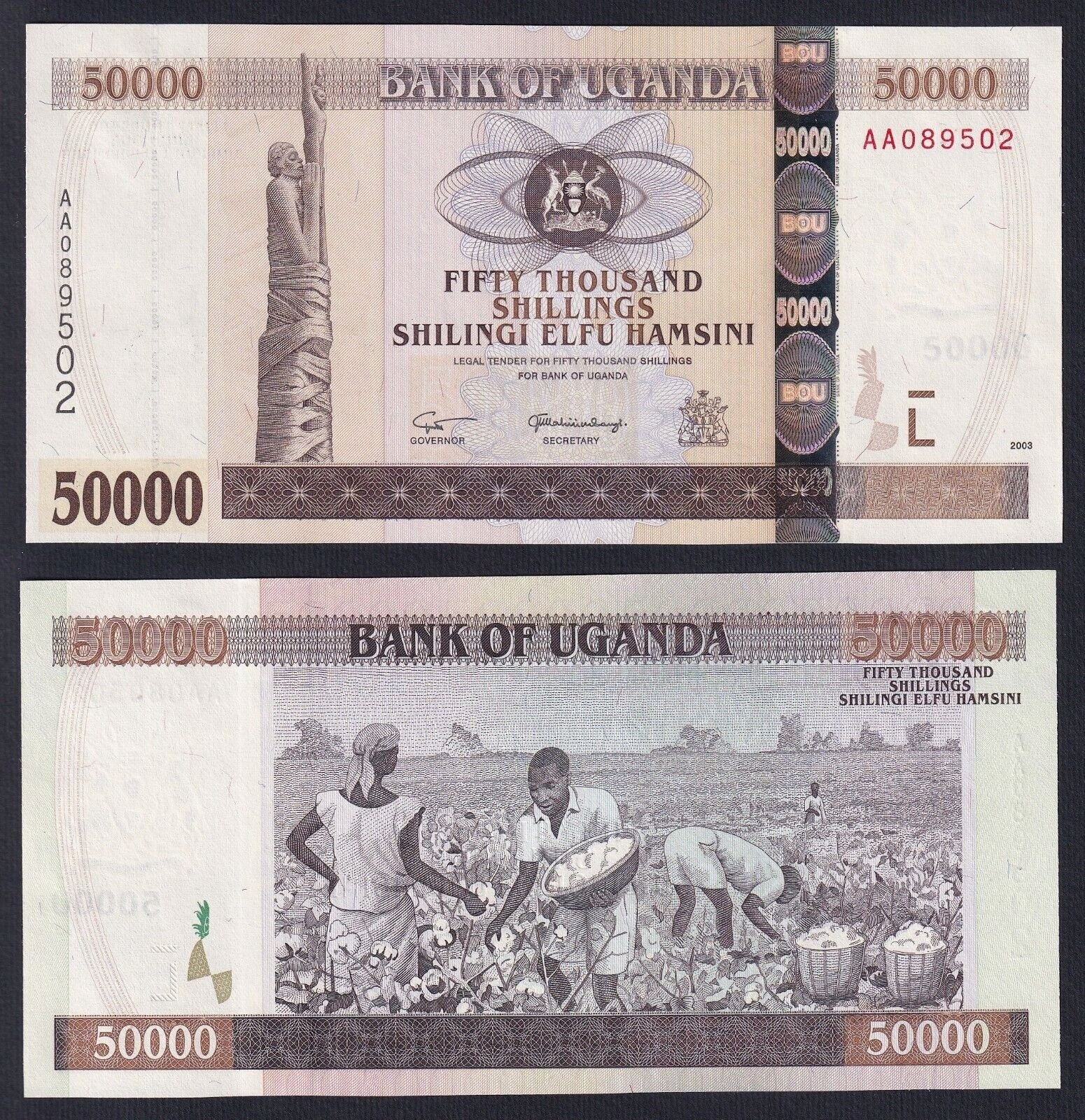 UGANDA 50000 Shillings 2003 P-47a Bardzo niskie numery seryjne AA064227 UNC
