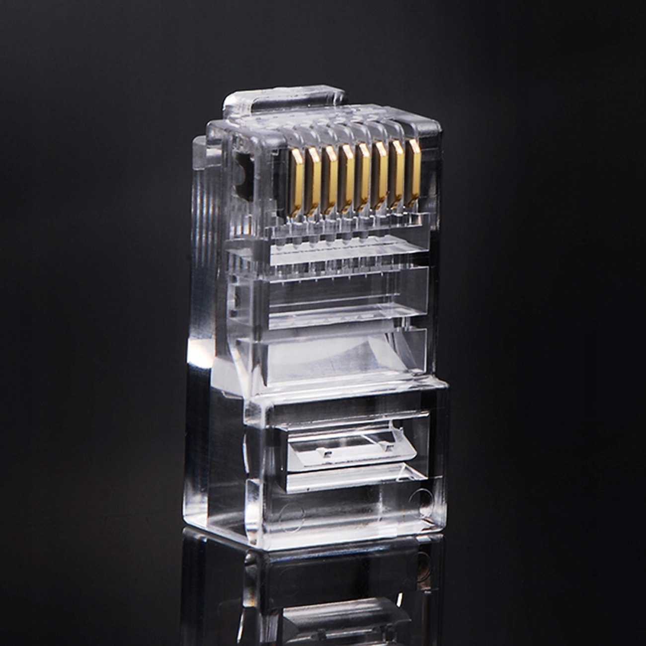 Модульная заглушка RJ45 8p8c Cat. 5, 5e используется для интернет -кабелей с цепком. Пробок используется в телекоммуникациях и компьютерном оборудовании. Это самый распространенный в качестве основного разъема для построения компьютерных сетей. Продукт был закончен с медными контактами, покрытыми золотом - это предотвращает окисление материала. Набор включает в себя 100 штук