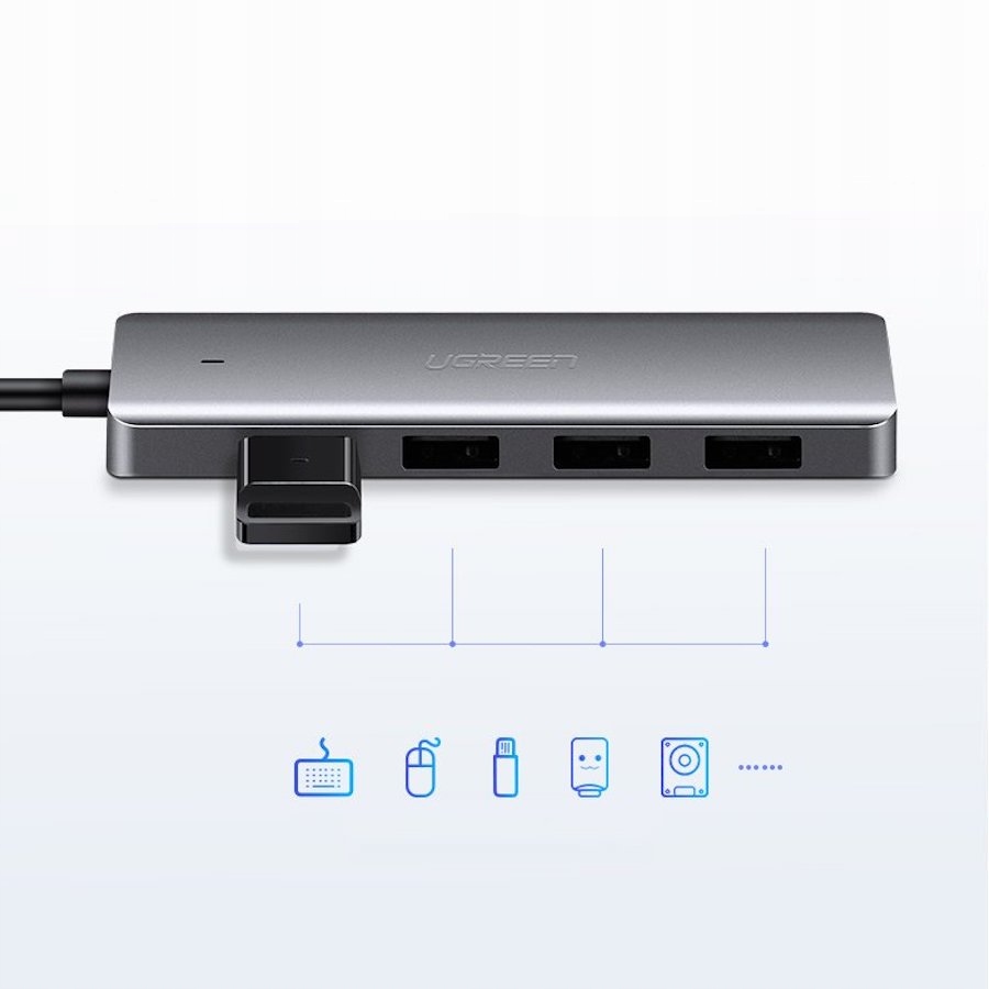 Ugreen CM219 Адаптер 4IN1 H2> HUB USB-C до 4X USB 3.0 + USB-C (GREY) H2> - Активная (опция мощности от USB-C порт)