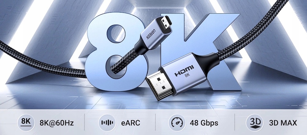 Кабель Ugreen HD164 - это уникальный продукт, который превышает стандарты качества изображения Благодаря сервису 8K@60 Гц предлагает чрезвычайно подробное изображение с непревзойденной ликвидностью.