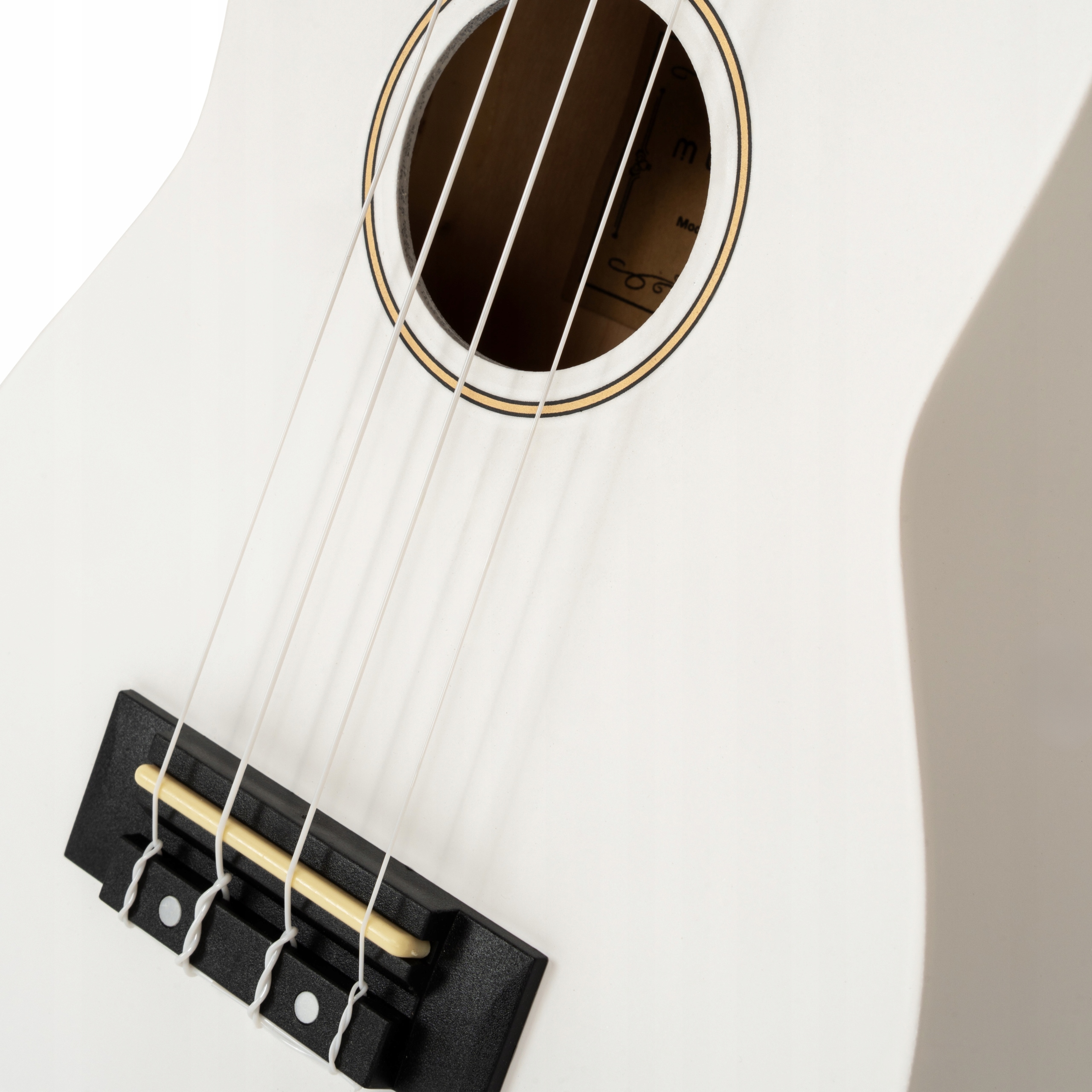 Укулеле Muscimate U-04-это комбинация элегантности с твердой производительностью. Белые цвета придают ему уникальный характер, в то время как Линден Вуд сверху, боковые стороны и задняя панель не только обеспечивают долговечность, но и теплый и красивый звук.