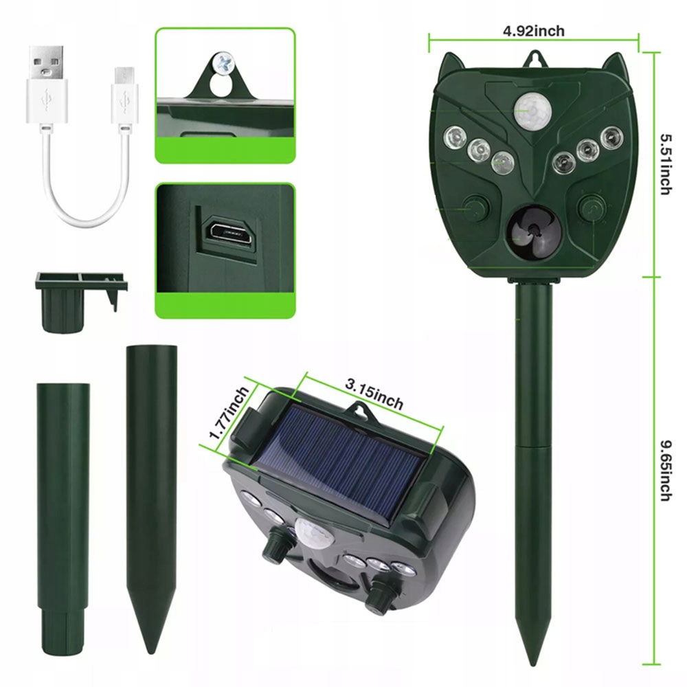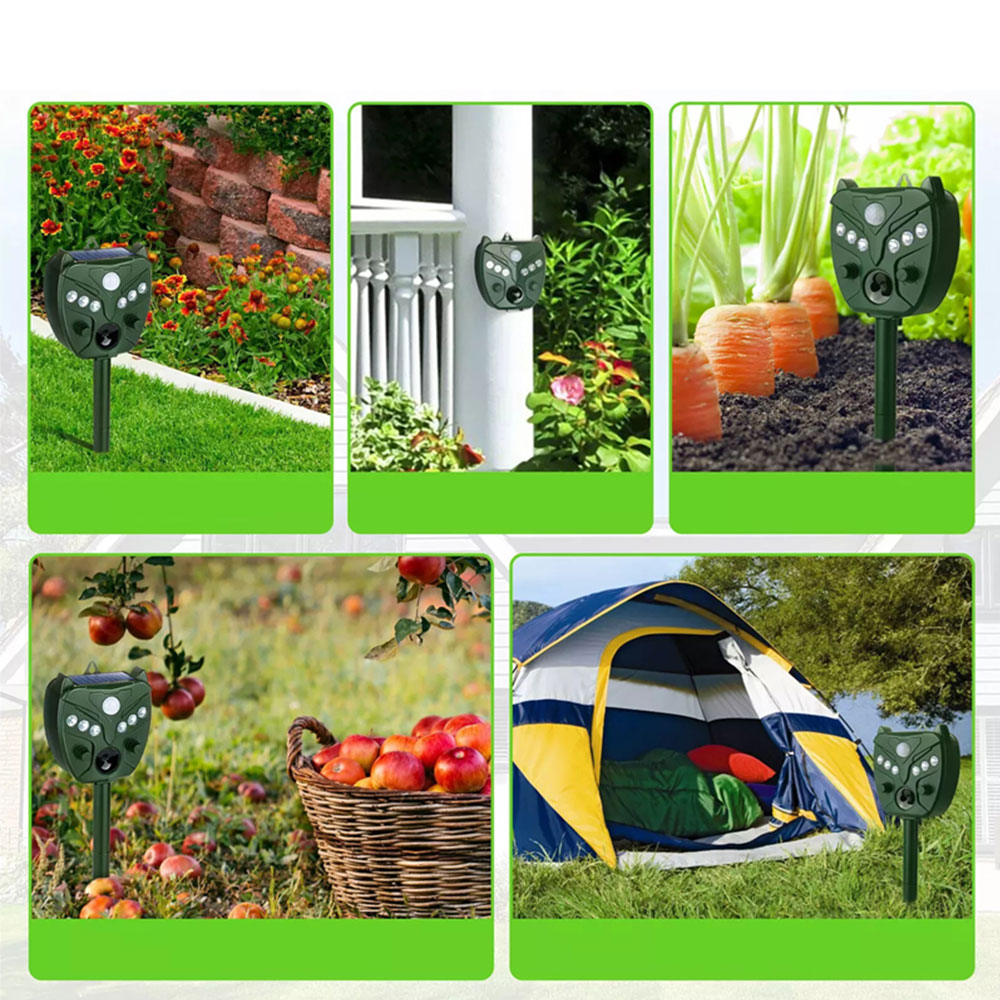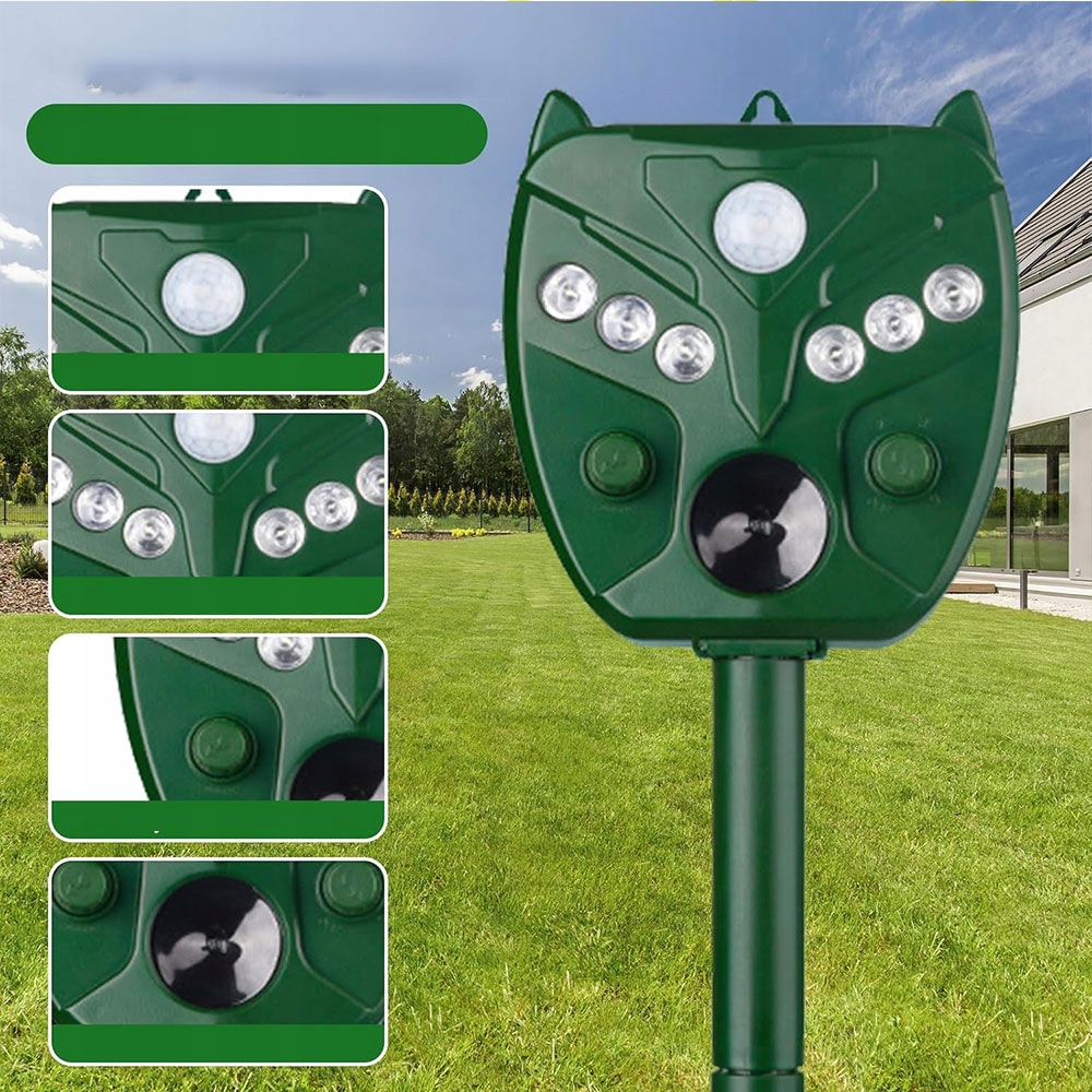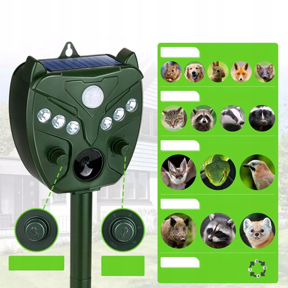 ✅✅bezpieczn Дзикич Цвиерцт. Он использует инфракрасный датчик движения PIR для отталкивания животных с различными красочными вспышками, ультразвуковыми частотными диапазонами и тревогой. При необходимости отрегулируйте, чтобы избежать животных, которых вы не хотите напугать.
