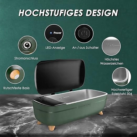 Esolom Портативный ультразвуковой очиститель, из нержавеющей стали, 400 мл, функция таймера, защита против высокой температуры, для очков, часов, ювелирных изделий