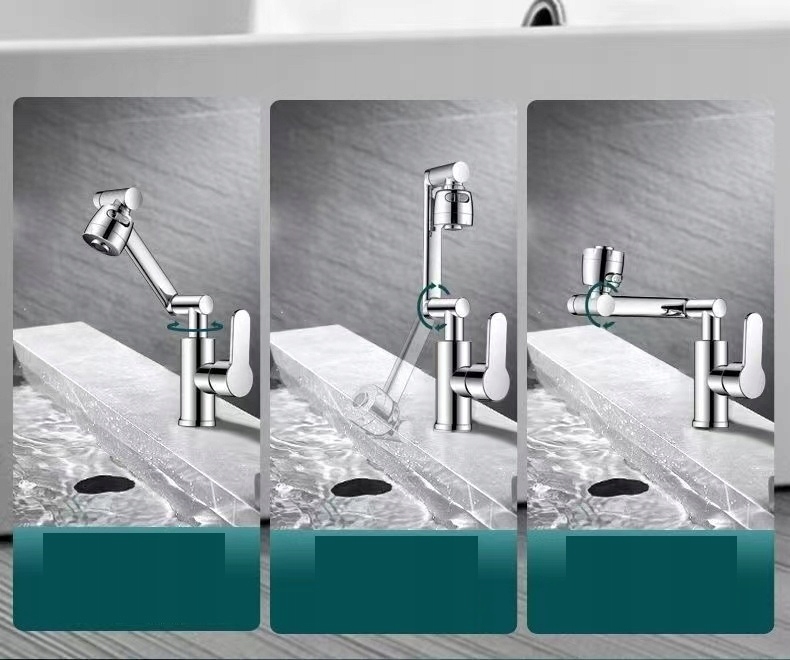 Подробнее о продукте Смеситель для кухни, смеситель для ванной комнаты, поворот на 1080°. Смеситель для кухни с манипулятором-роботом и 2 режимами выпуска воды для мытья лица. Ополаскивание волос. Мытье волос.
