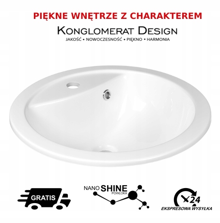 При производстве эксклюзивной линейки умывальников APM Product Konglomerat Design использованы конгломерат и смолы высочайшего качества, умывальники очень Прочные и устойчивые к царапинам, что делает их идеальными для повседневного использования. Умывальники предназначены для установки на столешницу или шкаф в заранее подготовленное отверстие. Умывальник имеет встроенный глянцевый хромированный перелив, расположенный посередине задней стенки чаши. Отверстие под смеситель диаметром 3,5 см и сифон 4,5 см, стандартизированные для соответствия 99% сифонов и кранов, доступных на польском рынке.