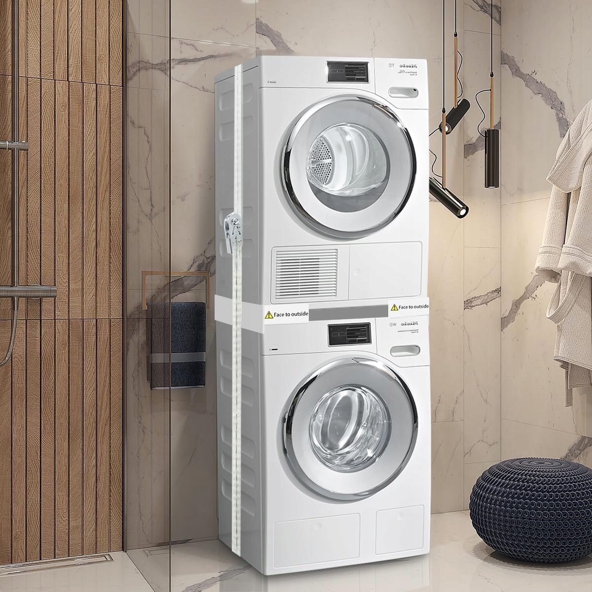 【Универсальный комплект для штабелирования】: Наш универсальный комплект для штабелирования с функцией push-in подходит для всех стиральных и сушильных машин глубиной 44,5–64 см, он легкий и простой в установке. Благодаря своим размерам соединительная рама универсальна и подходит практически для любой стиральной и сушильной машины.