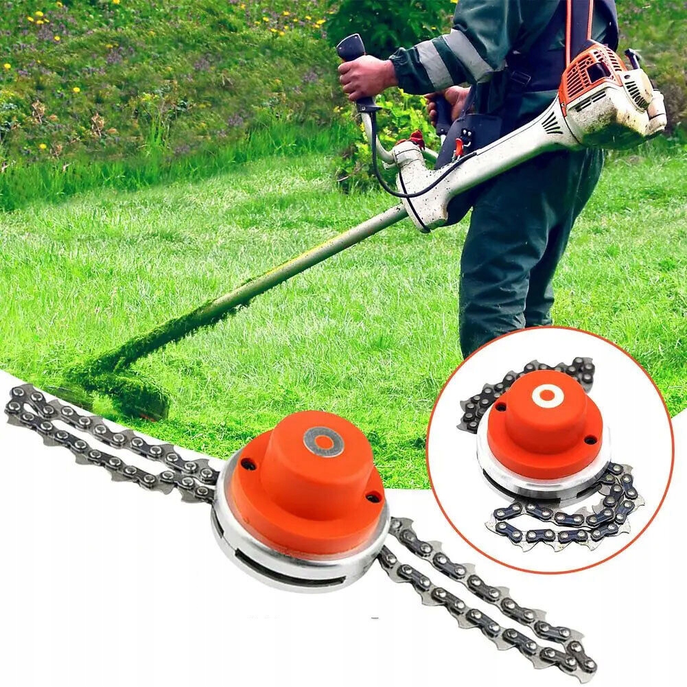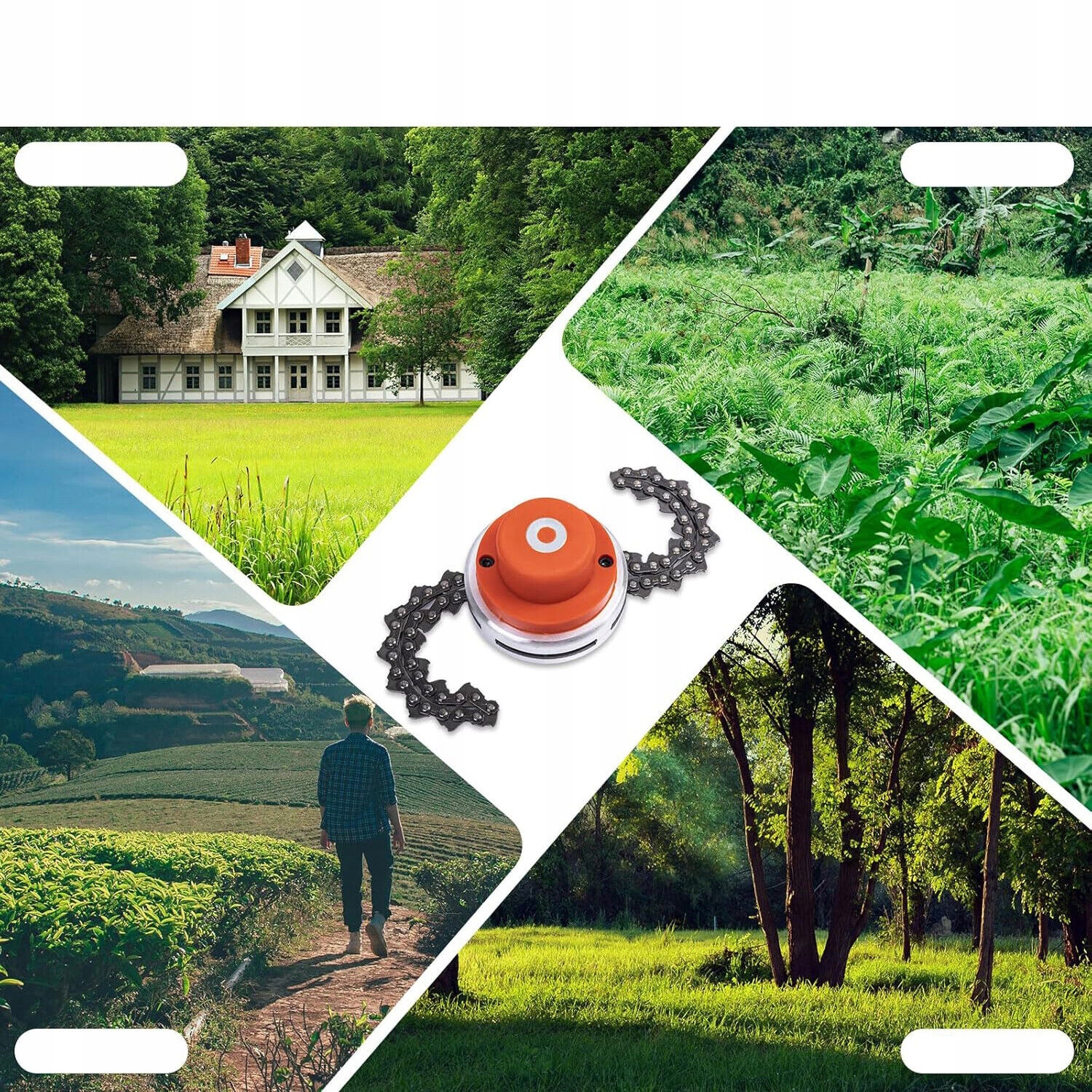 🌿 【Эффективное кошение】 Конструкция цепи режущей головки из марганцевой стали обеспечивает более эффективный процесс кошения. Острые зубья цепи быстро и равномерно срезают траву, обеспечивая плавное скашивание.