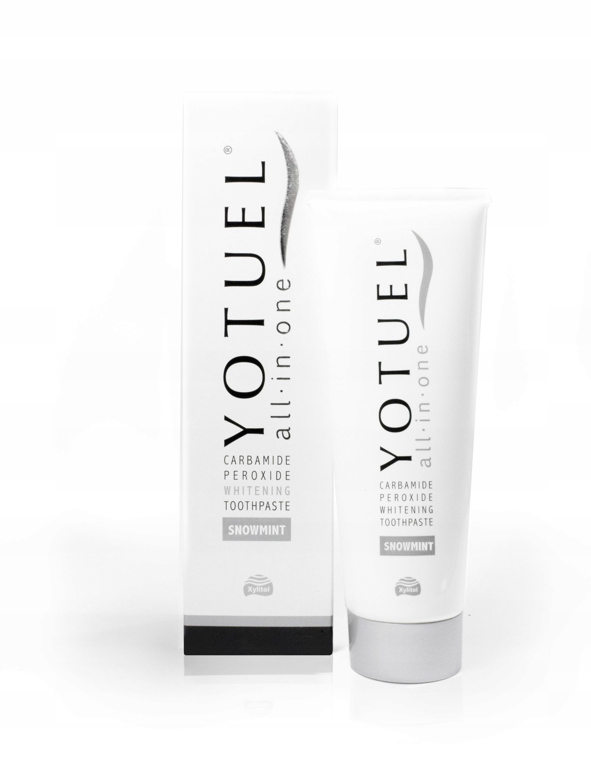 b> — зубная паста, рецепт которой не только отбеливает зубы, но и оказывает реминерализирующее действие на эмаль зубов. Формула пасты разработана и запатентована стоматологами и рекомендована во всем мире.YOTUEL Все в One б> — паста, в состав которой входят активные вещества, то есть перекись карбамида, фторид натрия и фосфаты кальция, это ингредиенты, которые не только отбеливают зубы, но и оказывают реминерализующее действие и предотвращают образование бактериального налета на эмали ваших зубов.