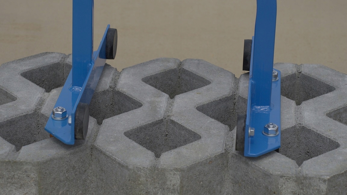 - Оборудован специальными резиновыми подушками обеспечивает безопасную передачу и укладку бордюров и сводит к минимуму риск повреждения элементов во время транспорта "