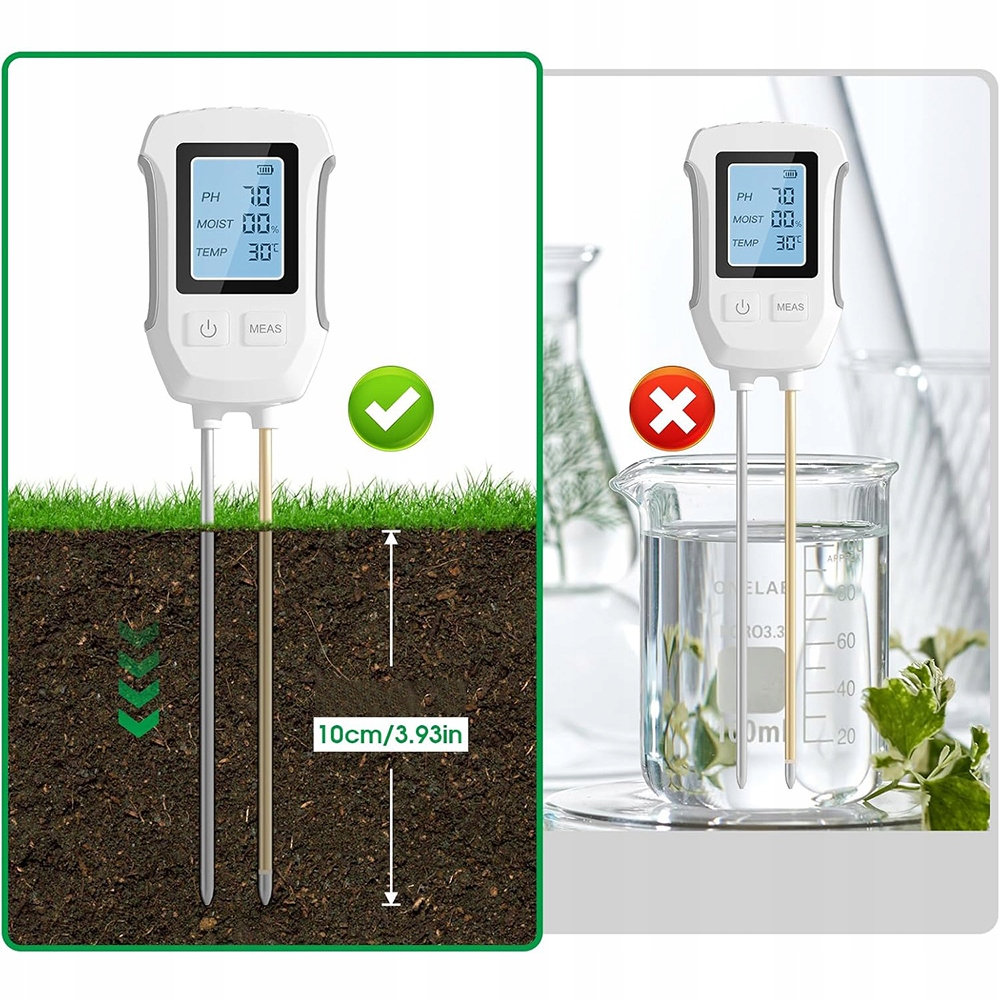 - может измерить температуры от -10 ° C до 90 ° C и влажности от 0% до 90%. В случае почвы в том же месте показания будут варьироваться в зависимости от глубины и контакта с землей. Рекомендованная глубина измерения составляет от 3 до 5 дюймов