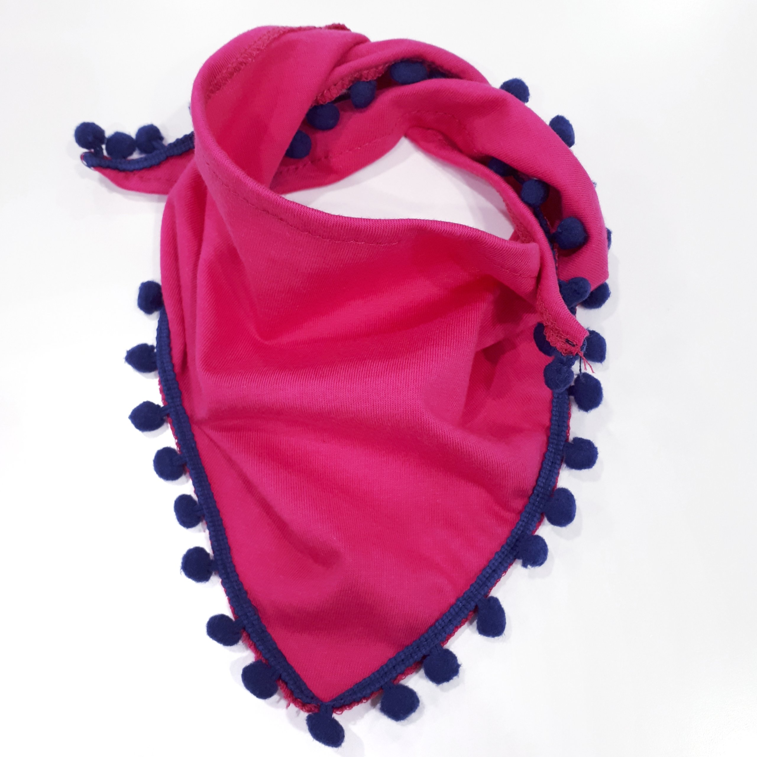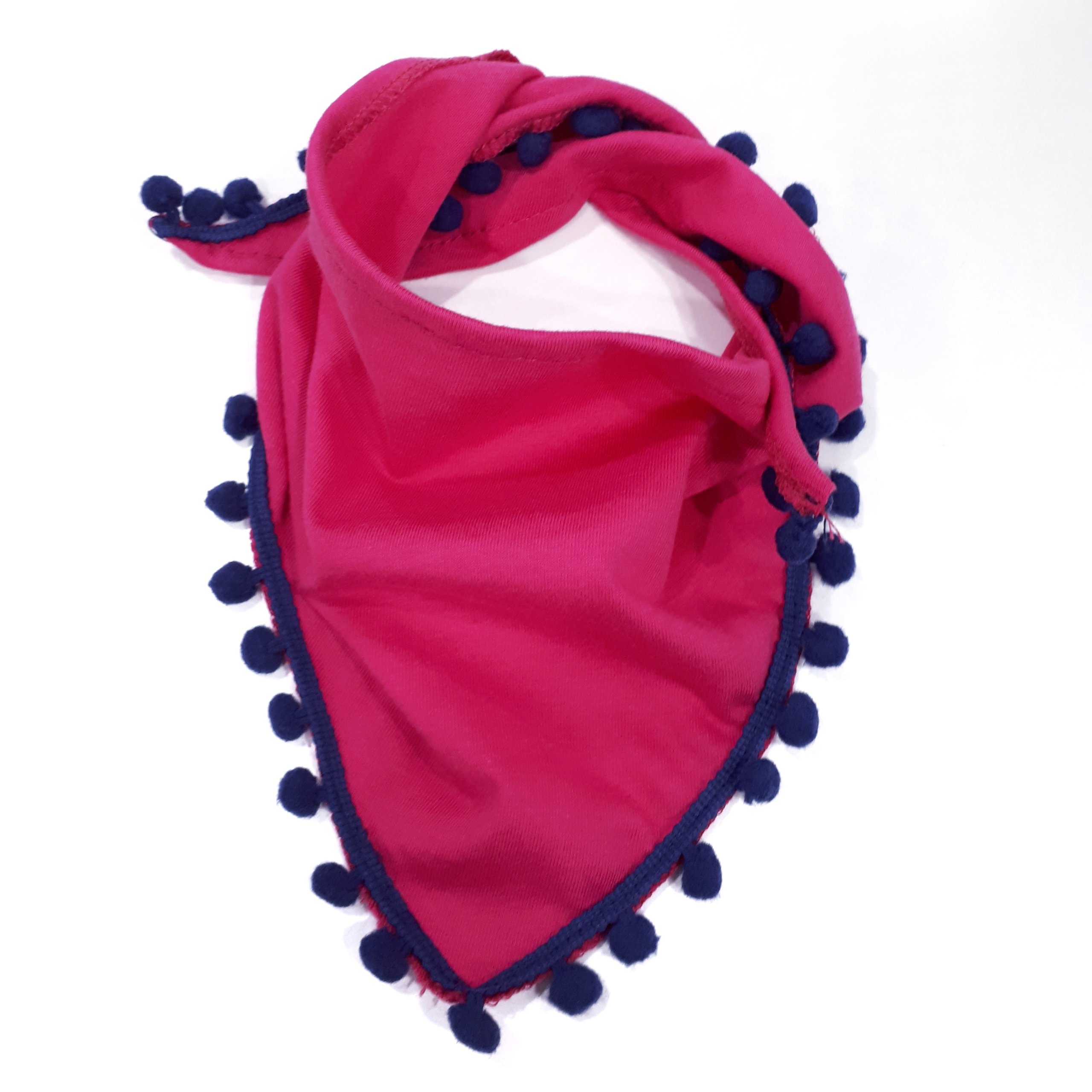 - Детский платок с помпонами. Шарф в форме треугольника для связывания под шеей. Модный и эффективный. Сделано из одного слоя материала. Он защищает от холода и выглядит фантастически.