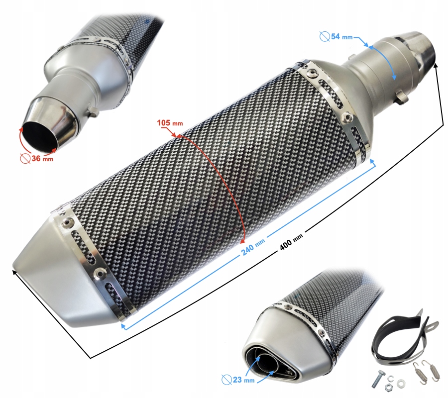 УНІВЕРСАЛЬНИЙ ТУНІНГ ГЛУШНИК STEEL013 (колір: карбон) - титановий наконечник