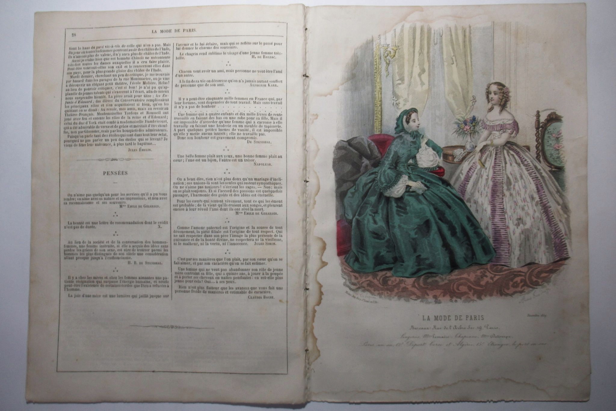Żurnal Moda Paryska, La Mode de Paris Nr 2 XII 1859 SUKNIE, CZEPCE, WYKROJE