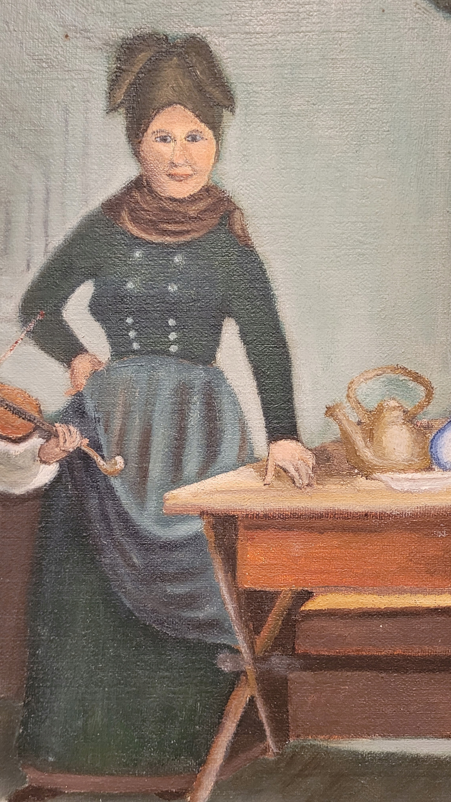 Тема продажи - красивая старая нефтяная картина «Урок музыки».