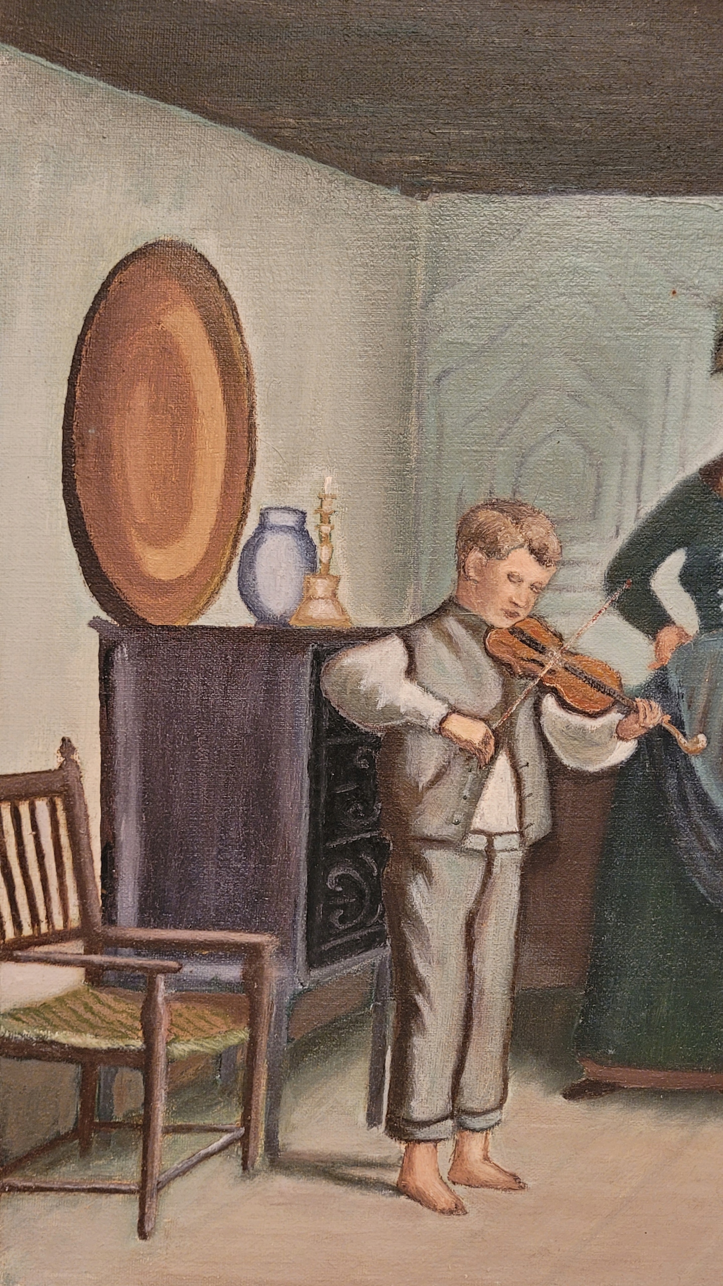 «Урок музыки»- подписанное изображение масла.