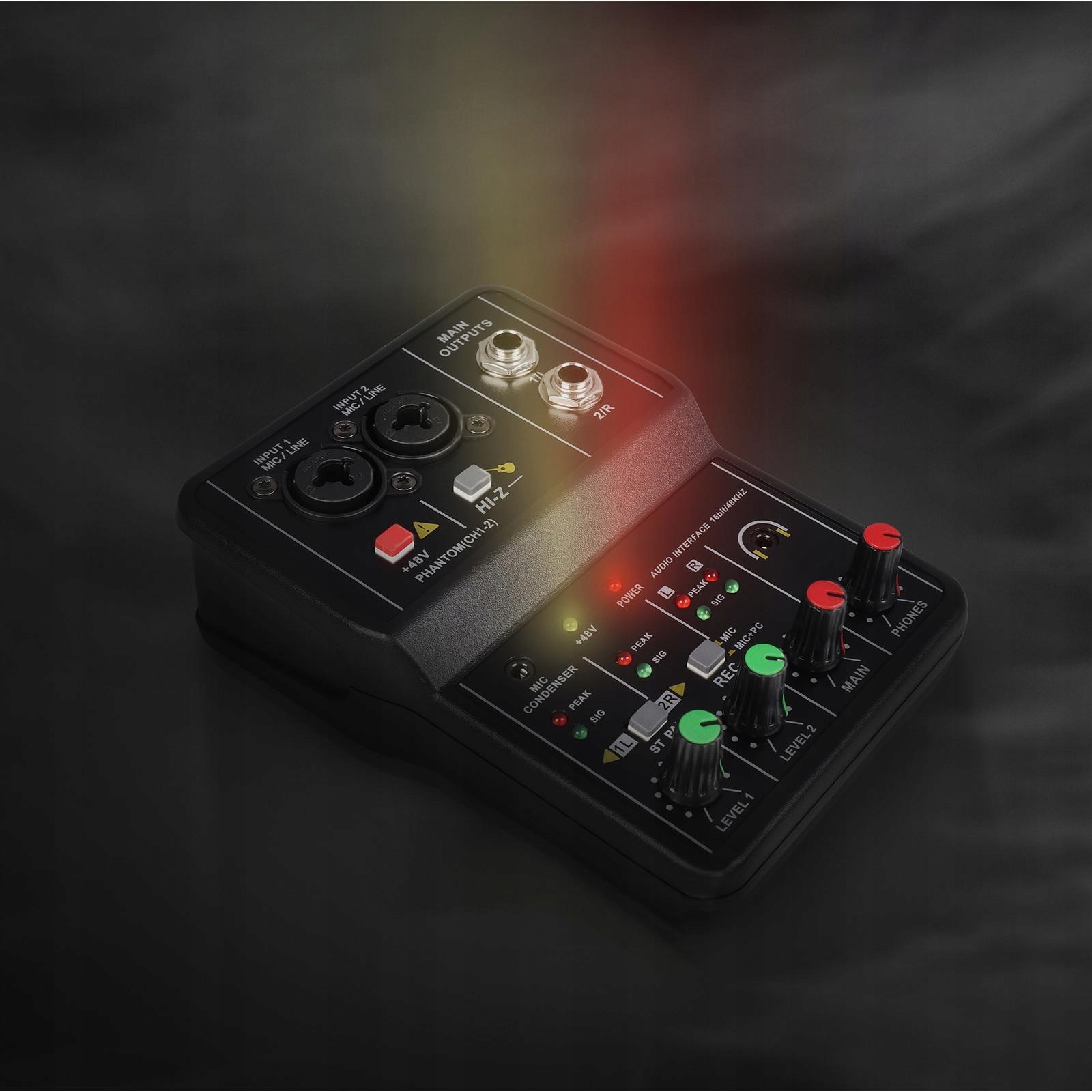 Легко в использовании: 2-канальный USB-интерфейс, 1/2 стерео-линейный вывод моно-переключенного моно. Каждый канал имеет свой собственный регулятор громкости.