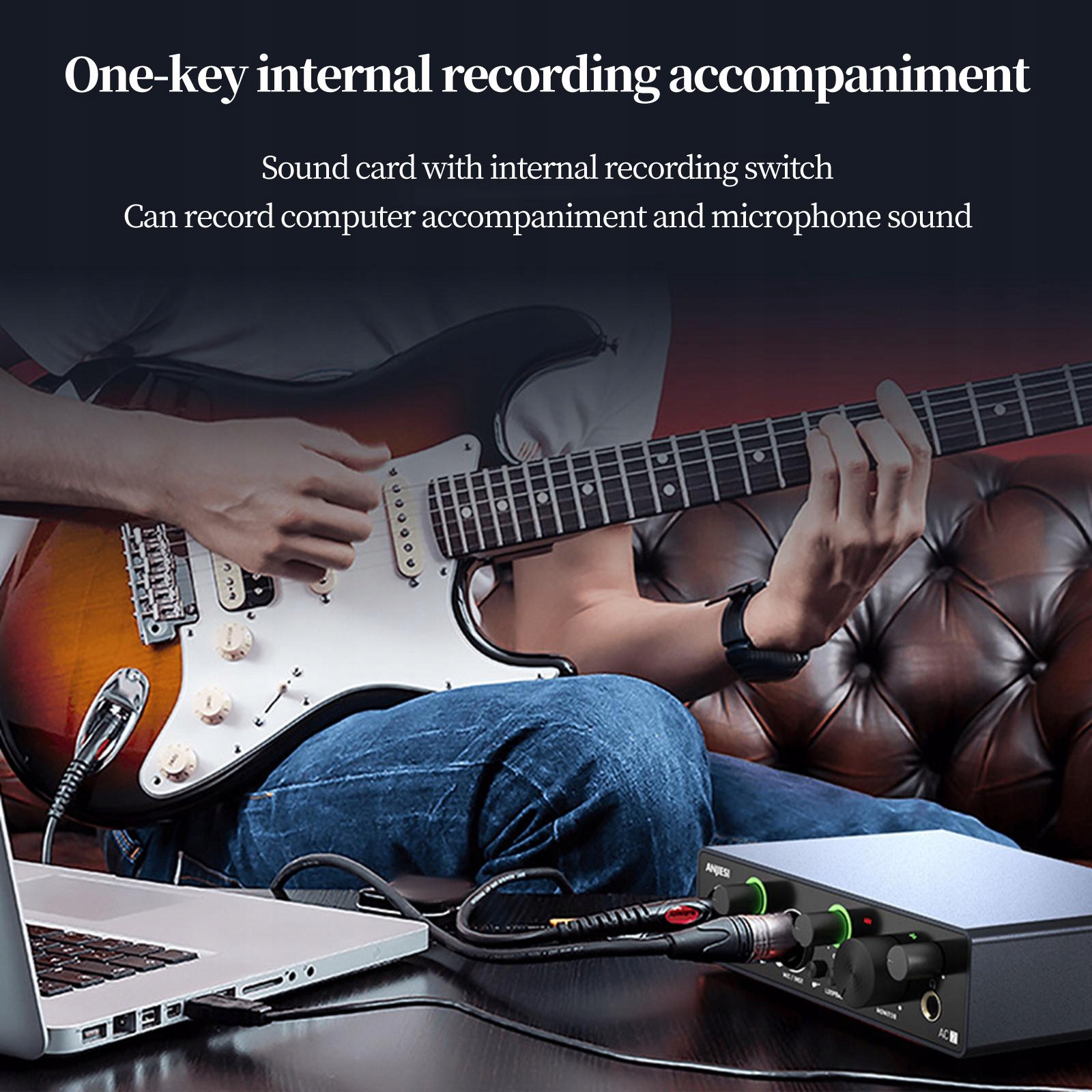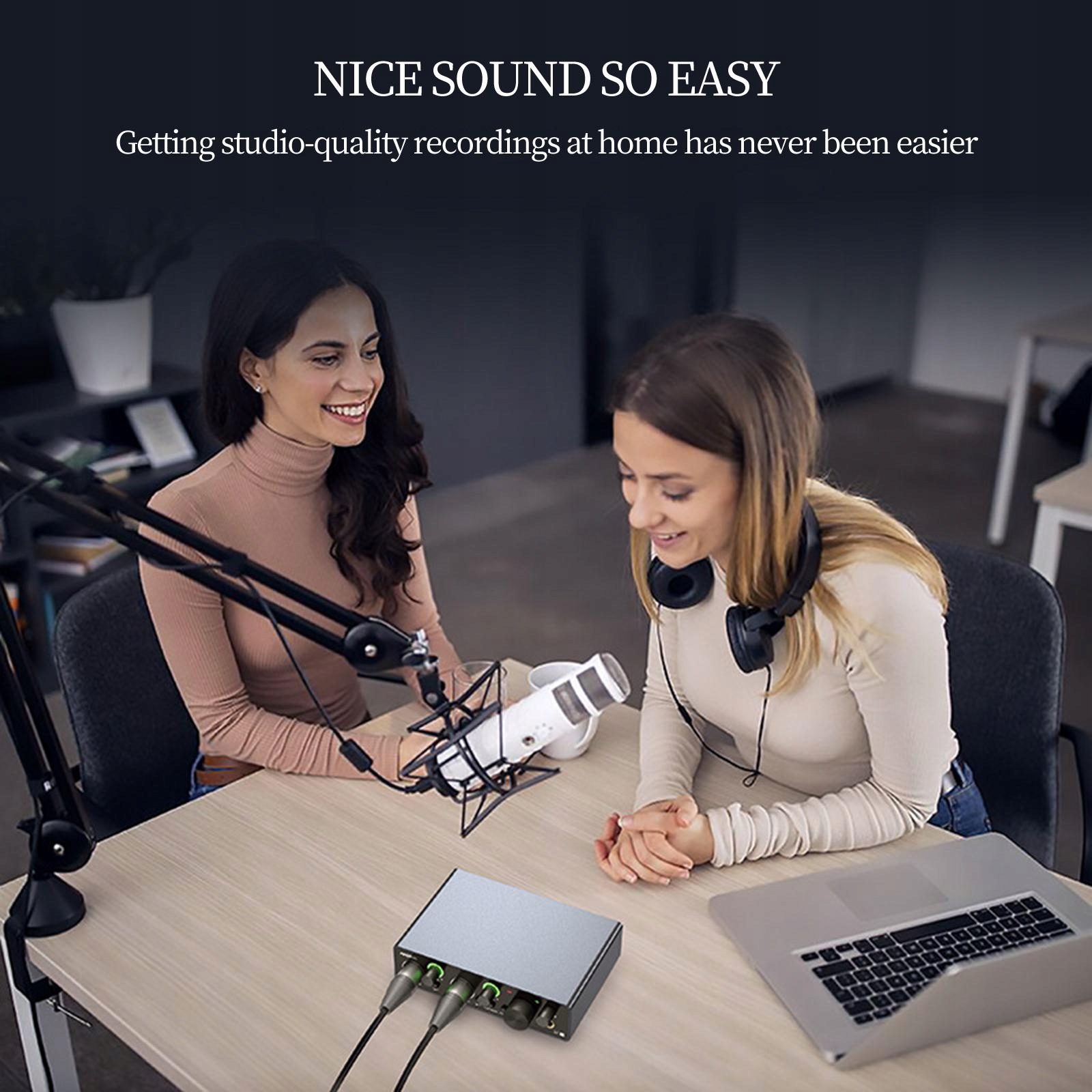 Аудио -интерфейс USB: USB Audio Interface принимает частоту выборки 192 кГц, аудио -кривая более точна, сохраняются лучшие звуковые детали, а качество записи выше, не опасаясь перегрузки или искажения. 48 V источник питания, который может подключать два микрофона для одновременной записи и поддерживает профессиональные емкостные микрофоны с большой мембраной.