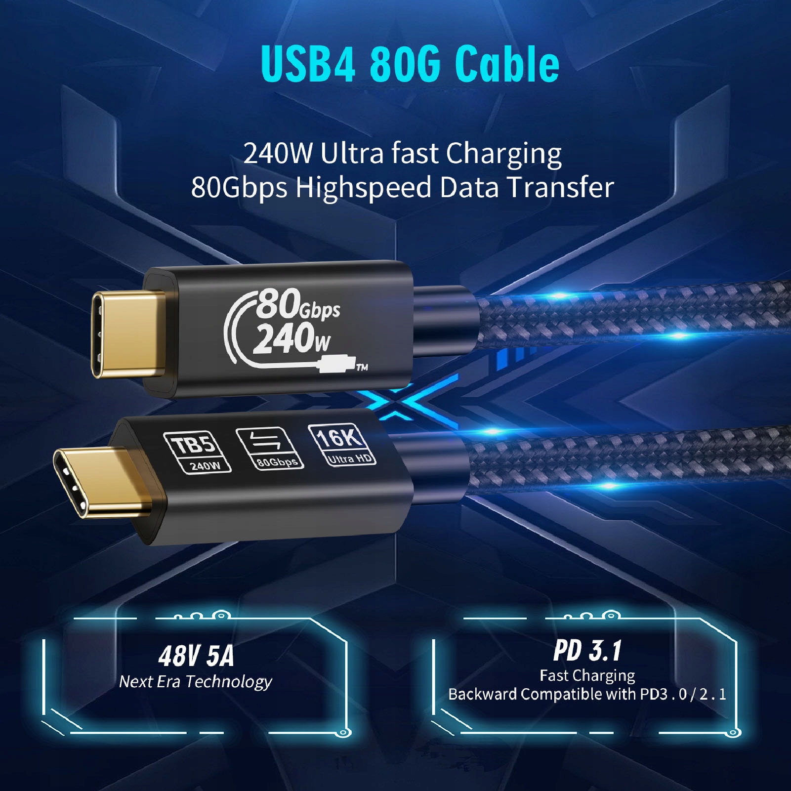 USB 4 240 Кабель в USB -кабеле C 80 ГБ / с 3,3 фута 16K 8K 4K QZ