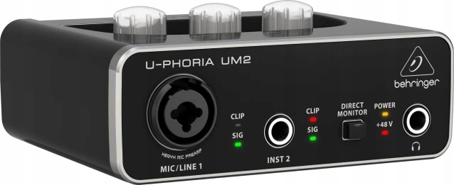 Интуитивное управление UM2 был разработан с учетом простоты использования. На передней панели расположены легкодоступные ручки входного и выходного уровня, позволяющие быстро и легко настраивать параметры. Благодаря светодиодным индикаторам можно постоянно следить за уровнем сигнала, что обеспечивает точный контроль над записью.