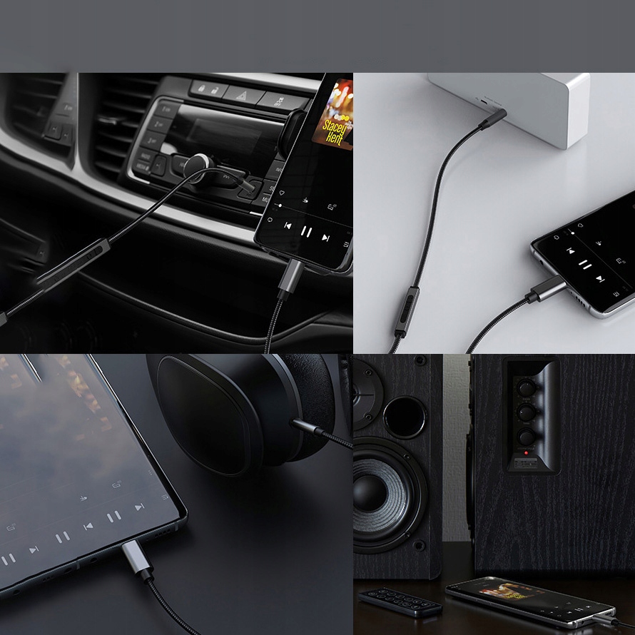 кабель USB-C для Aux (Mini Jack 3,5 мм) b> будет работать идеально как домашний аксессуар и для автомобиля. Автомобиль , башни, усилители.