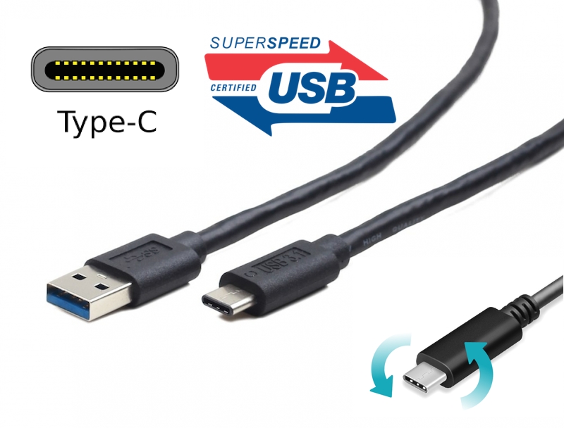 - Кабель USB-C — USB 3.0 A (CM-AM) 1,8 м