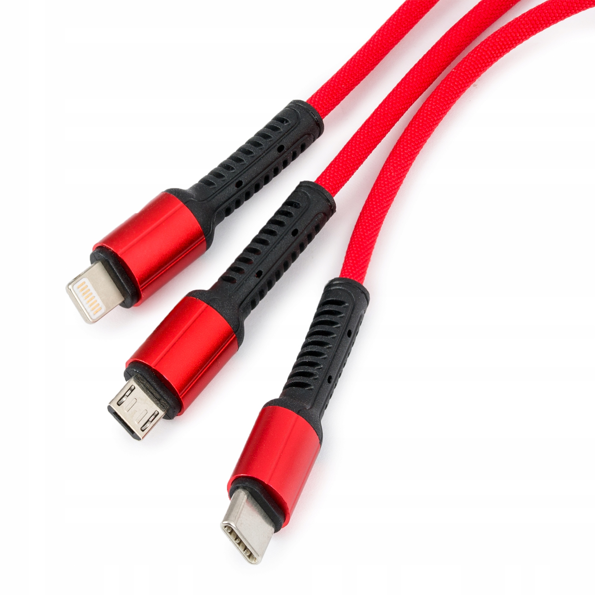 Кабель оснащен тремя концами, что обеспечивает совместимость с любым устройством. Насадки Lightning, USB Type-C и Micro USB позволят вам заряжать 3 устройства одновременно! iPhone, планшет или аккумулятор — вы можете заряжать все три устройства одновременно с помощью одного кабеля.