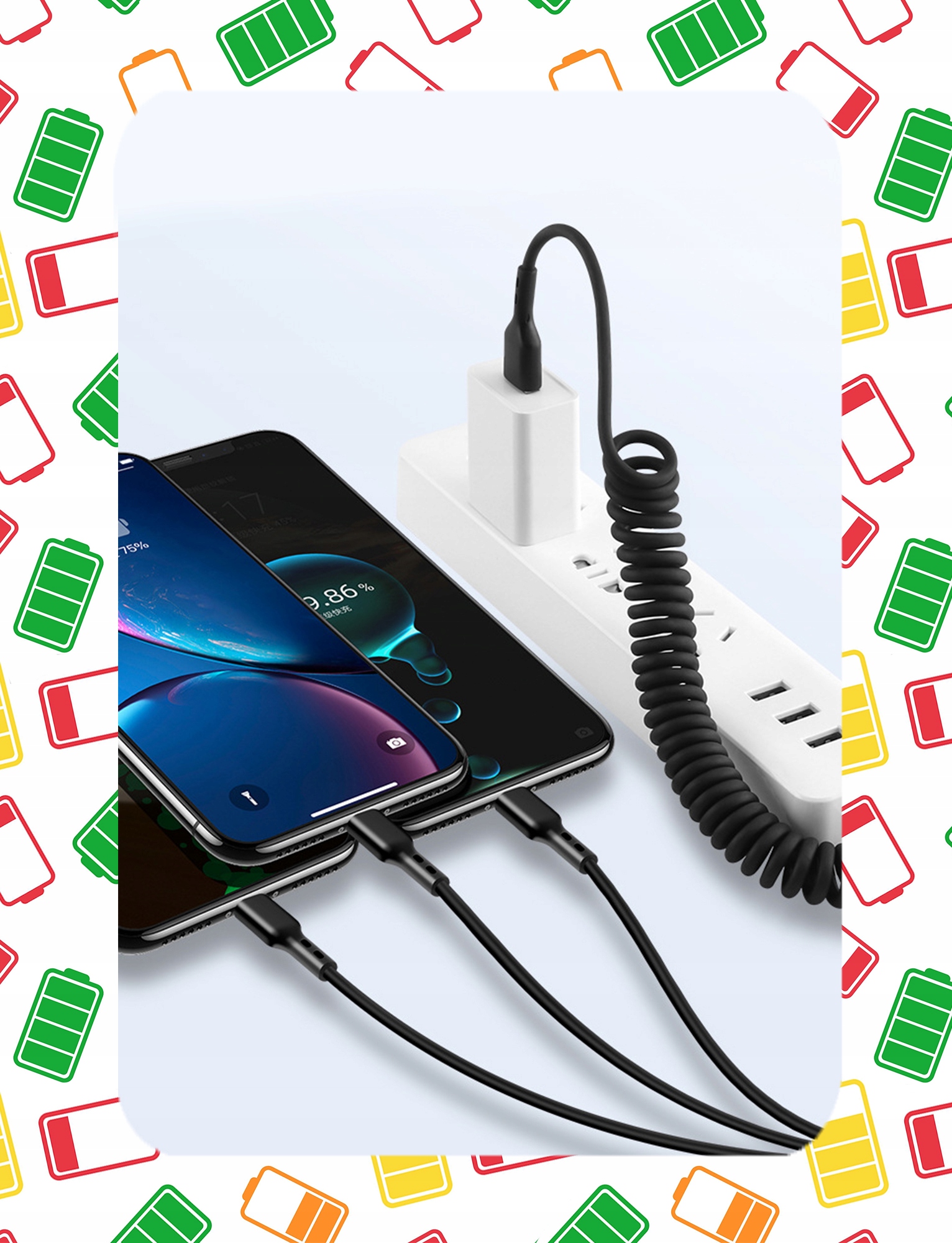 Благодаря своей длине и гибкости кабель 3-в-1 является идеальным решением для использования в автомобиле. Вы можете легко заряжать свои устройства во время езды, а подпружиненная конструкция гарантирует, что кабель не займет много места и не запутается. Это особенно полезно, когда вы путешествуете с семьей или коллегами и вам необходимо заряжать несколько устройств одновременно.