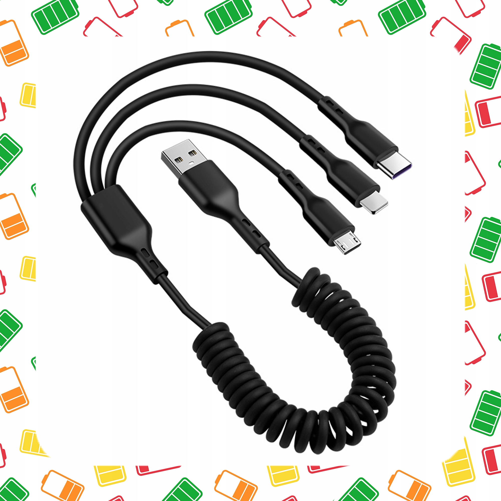 ✅USB 3in1 QC 3.1 A Fast Charge Type-C Lightning Micro USB-кабель для автомобиля Кабель 1,5 м с пружиной! ✅
