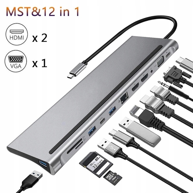 USB-концентратор 12 в 1 док-станція MST dual Y383