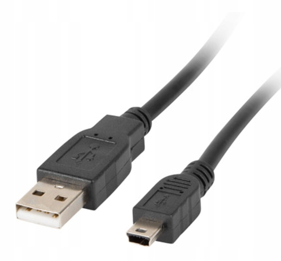 USB-кабель тип A-Mini-B, идеально подходит для старых электронных устройств. Черная версия, длина около 1,6 м.