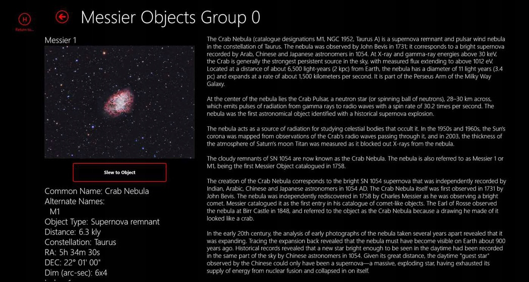 Пользовательский интерфейс основан на классической четырехбуттонной системе, которая позволяет вам вести, в центре, перемещать телескоп, касаясь планшета или экрана телефона.