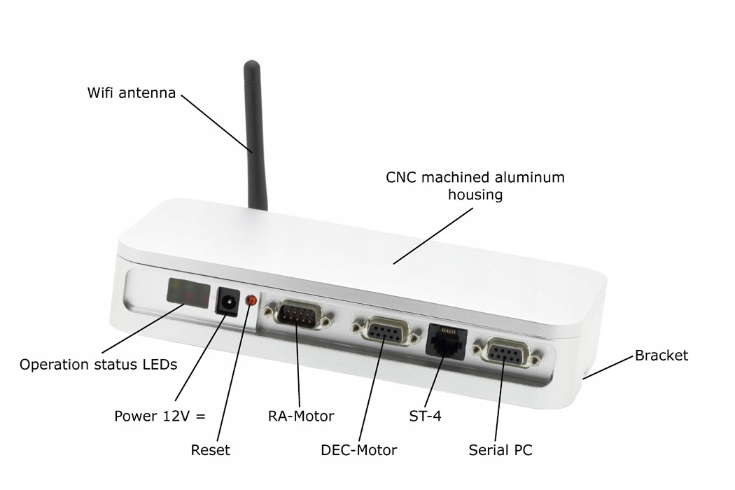 Electronics также включает в себя порт Autoguider (вход ST4) и совместим с платформами ASCOM и программами, которые поддерживают ASCOM.