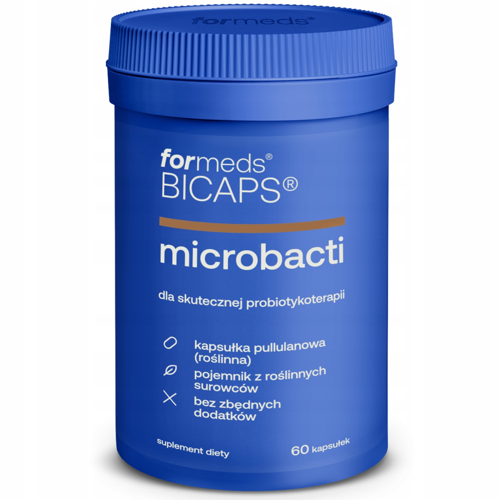 bicaps microbacti пищевые добавки из формированных содержит смесь микробактов (состав из 4 микрокапсулированных штаммов бактерий 8 миллиардов КОЕ) и 210 мг инулина в 1 капсуле без каких -либо добавок. Продукт подходит для вегетарианцев и веганов .