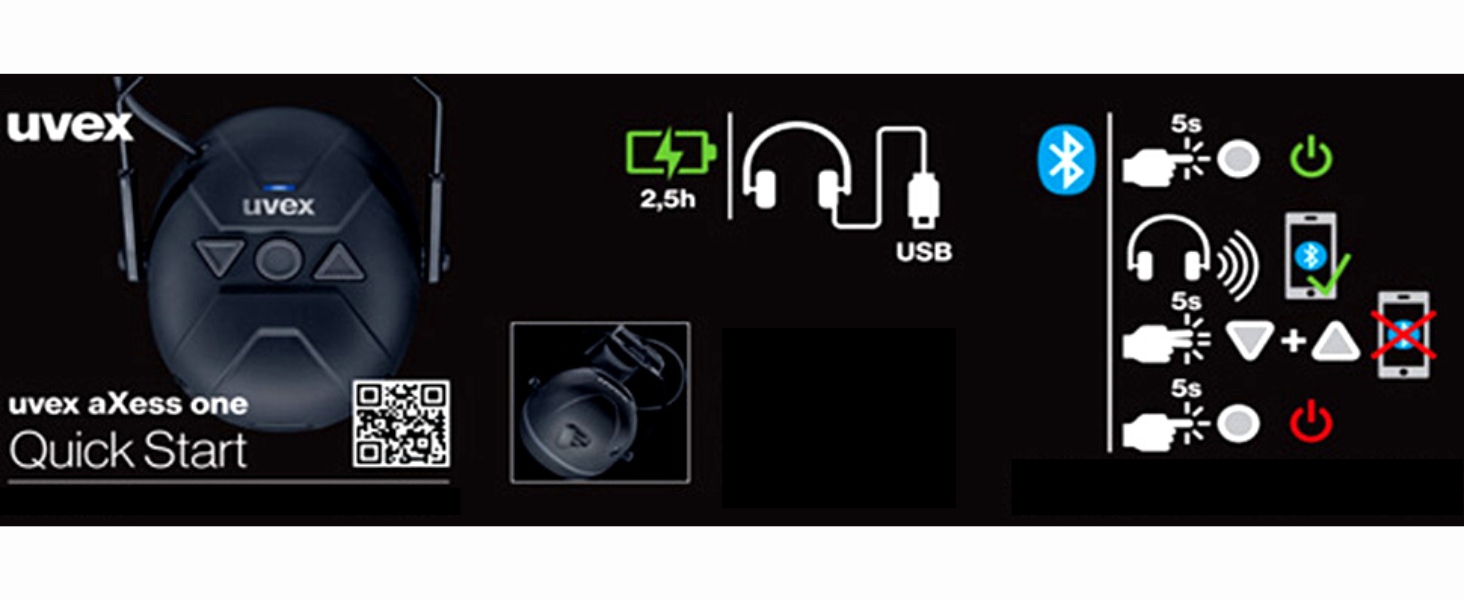Uvex aXess one; активные средства защиты органов слуха с функциями Bluetooth и RAL (Real Active Lilining). Они позволяют воспринимать звуки окружающей среды даже при ношении средств защиты органов слуха. Благодаря этому возможна связь и лучше воспринимаются предупреждающие сигналы. Громкость окружающих звуков можно настроить индивидуально, а встроенный ограничитель уровня звука защищает ваш слух от импульсного шума. Соединение Bluetooth 5.0 позволяет, например, подключить телефон или радио, благодаря чему общение возможно, не прерывая работу. Режим двойного подключения позволяет подключить два устройства одновременно. Управление осуществляется быстро и легко с помощью функциональных кнопок на наушниках, оставляя обе руки свободными для работы. Аудиоассистент информирует вас о текущем состоянии, поэтому в опасной зоне снимать наушники не нужно. Когда защитные очки uvex aXess one не используются, их можно сложить (благодаря складному оголовью) до небольшого и удобного размера.