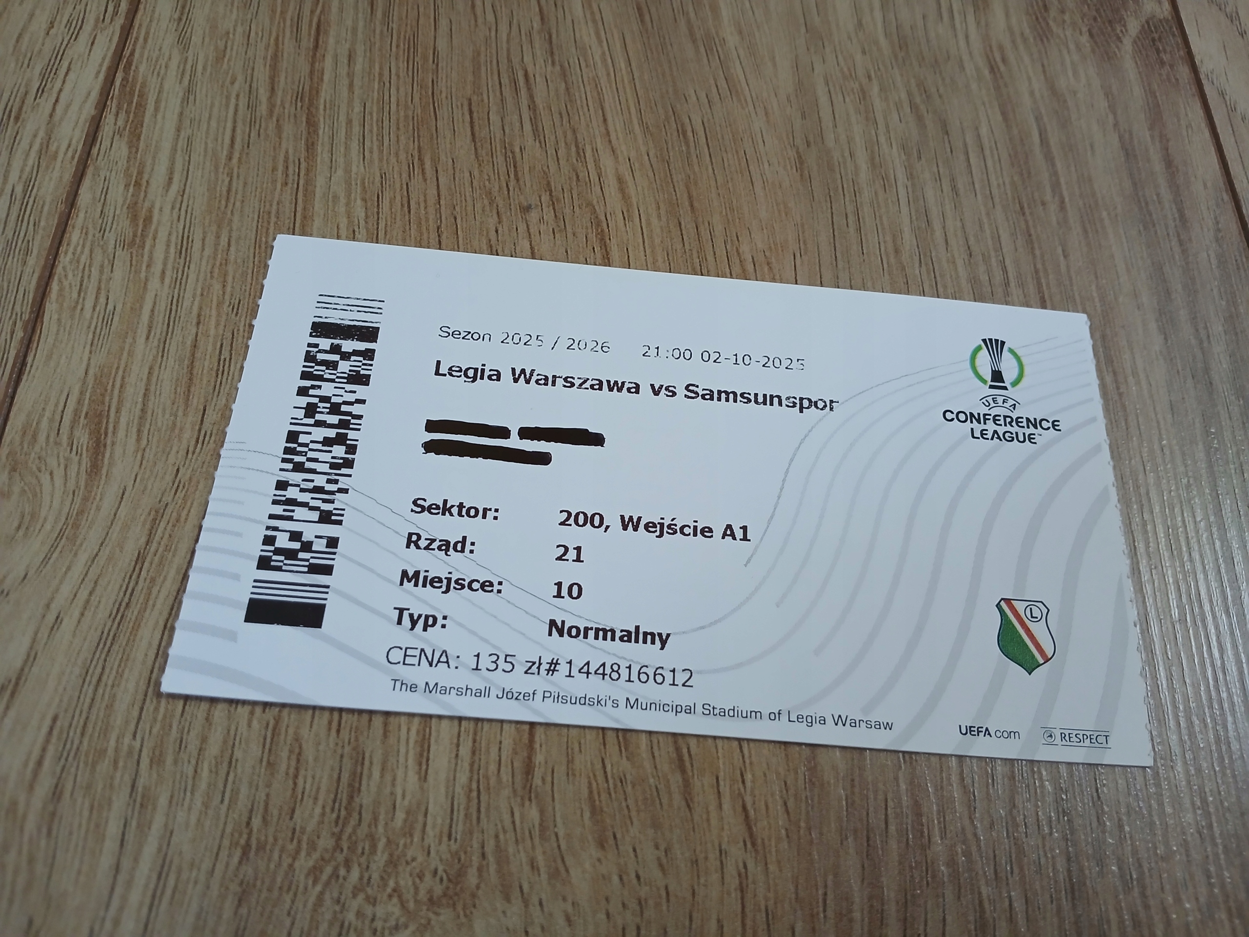 Używany bilet Legia Warszawa - Samsunspor - 2.10.2025