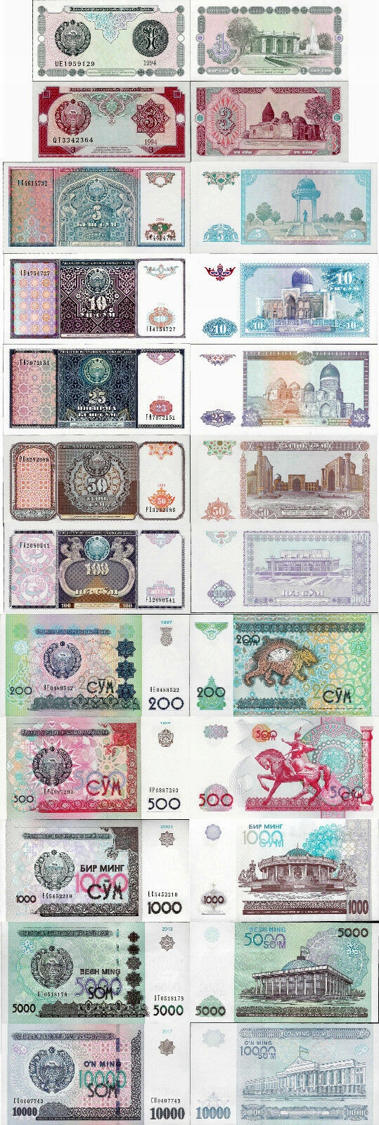 Узбекистан 1994-2017 набор из 12 штук -Pick 73-84 UNC
