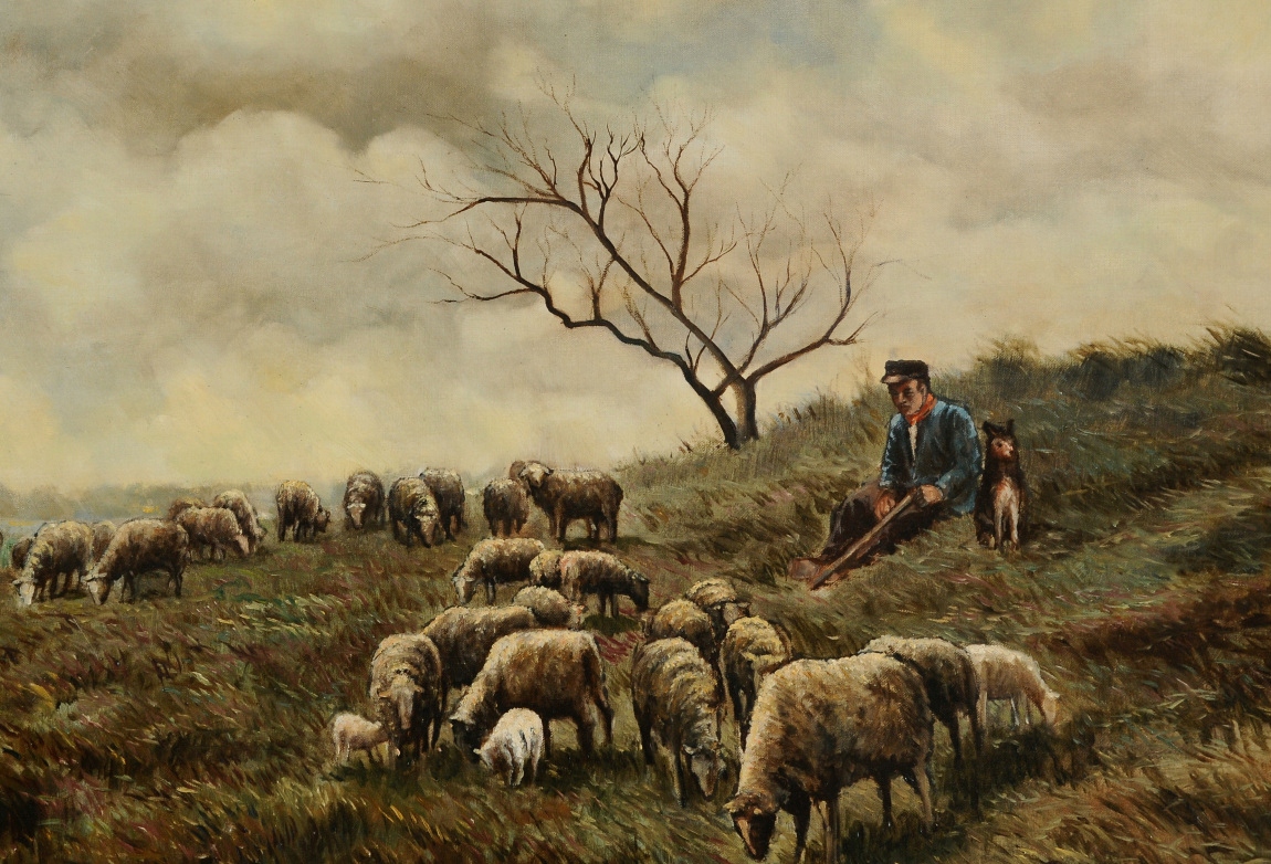 W. Reynders Shepherd с овцами красивой масляной картины!