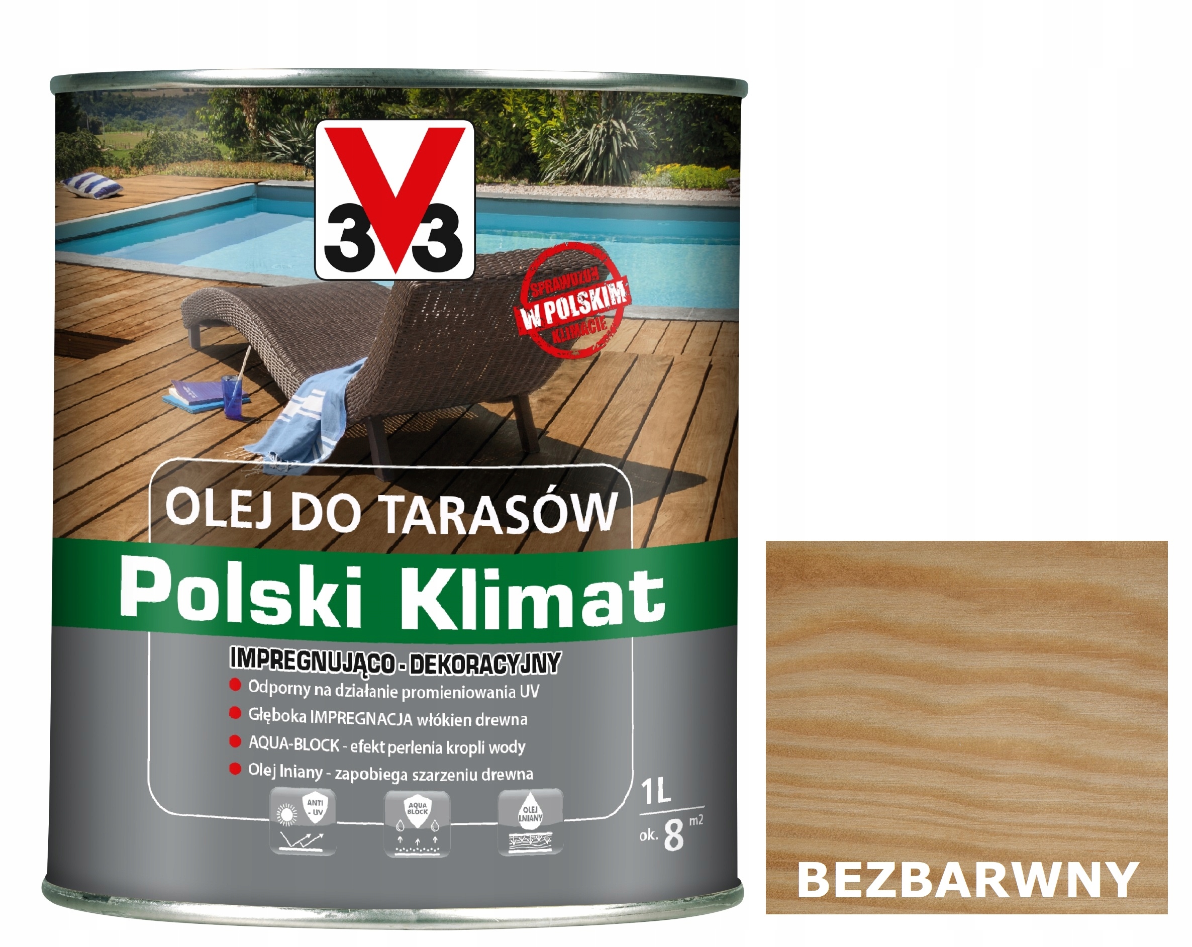 V33 БЕСЦВЕТНОЕ МАСЛО ДЛЯ ТЕРРАС 1L 3V3