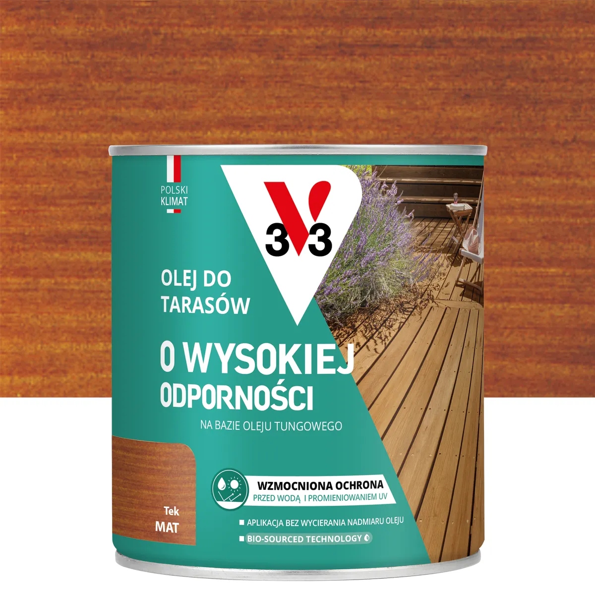 Нефть для террасов с высоким сопротивлением V33 эффективно и навсегда защищает деревянные террасы и садовую мебель от вредной воды, ультрафиолетового излучения и грязи.