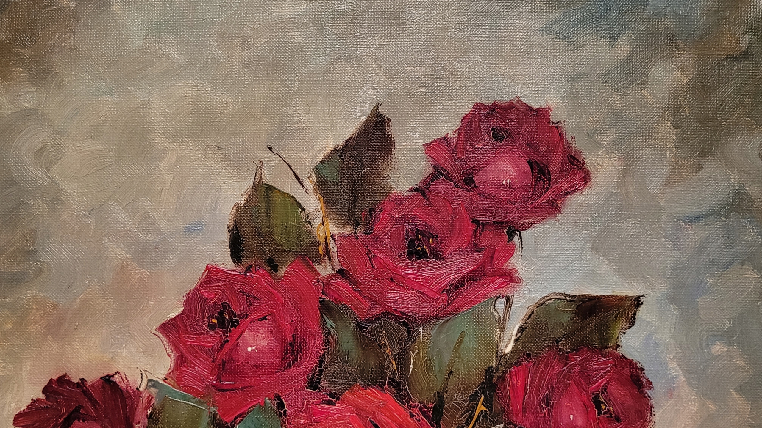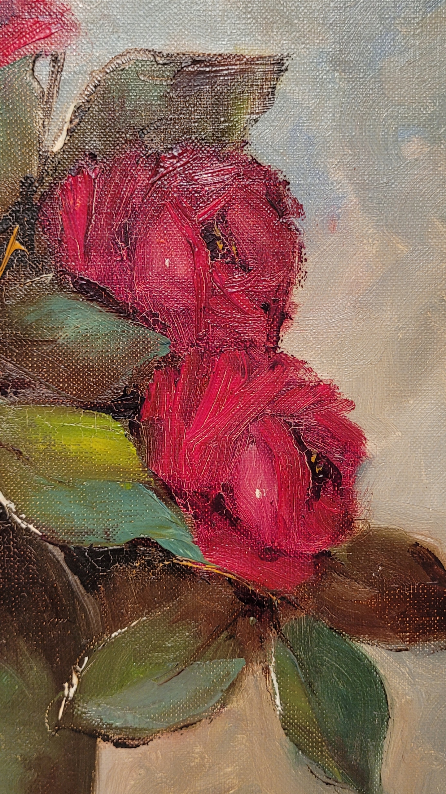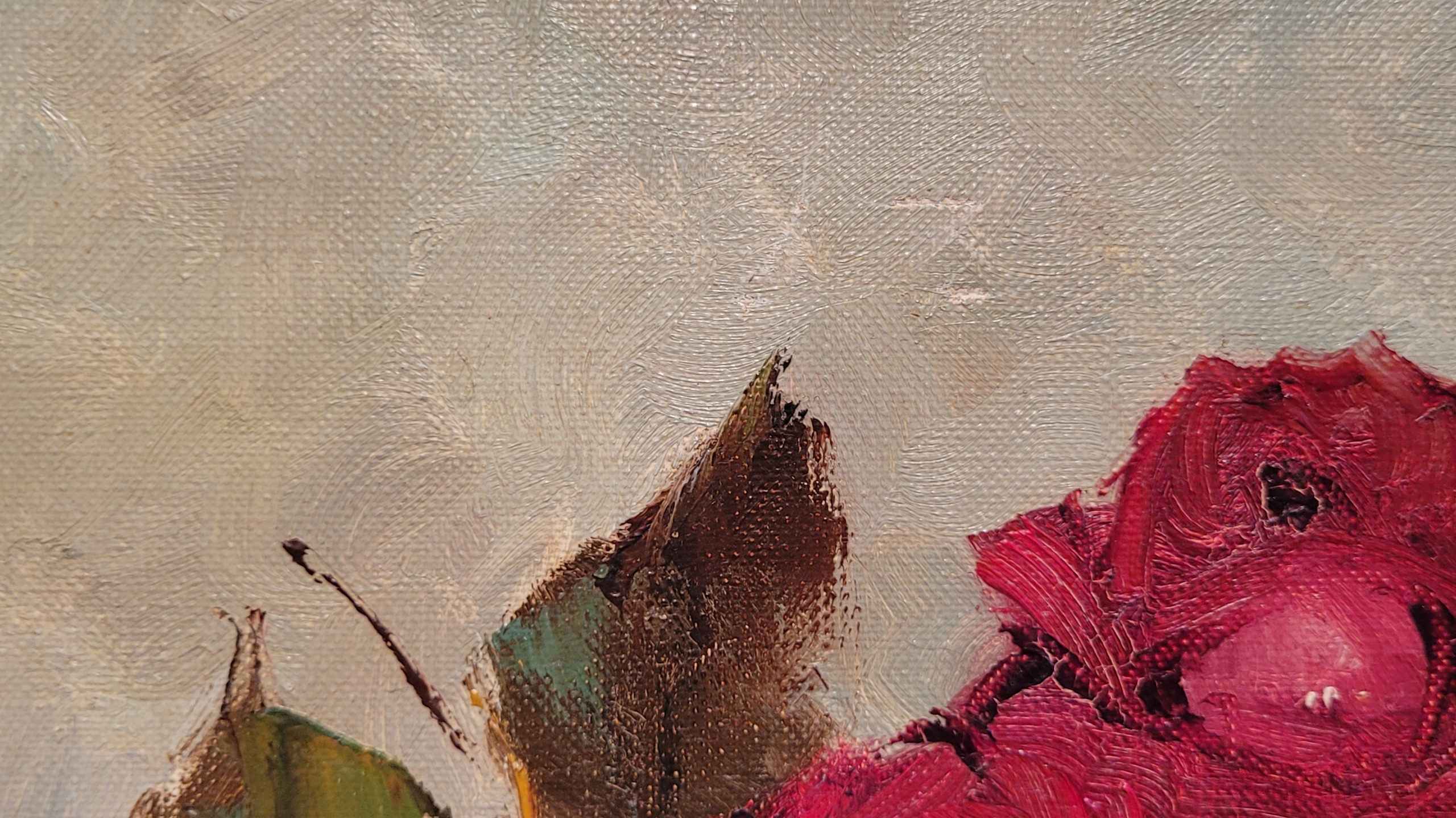 Предмет продажи — красивая старинная картина маслом «РОЗЫ».