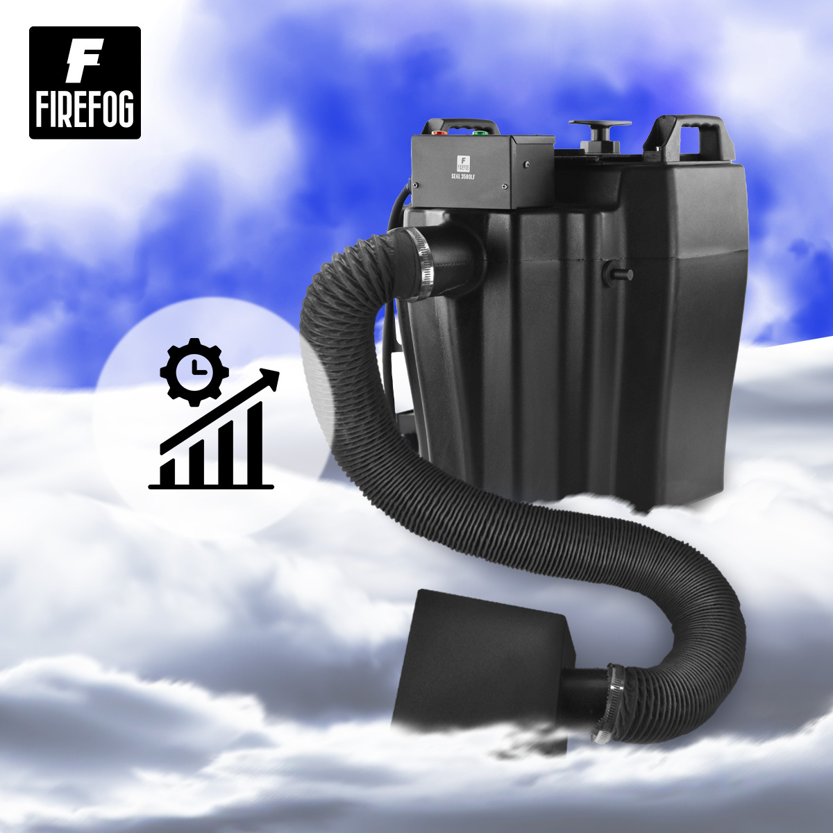 Максимальная непрерывная производительность 5-6 минут обеспечивает долгосрочное использование без необходимости частого пополнения (вода и сухой лед). Это экономит время и обеспечивает непрерывность дымового эффекта