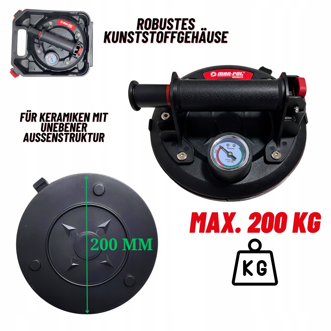 вакуумная всасывающая чашка с насосом и датчиком давления, глазури, стекла, стекла - емкость до 200 кг h1>