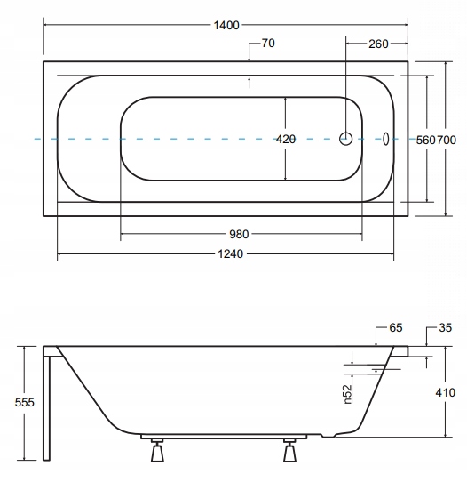 Ванна Continea 140х70см + ножки + сифон + полотенце